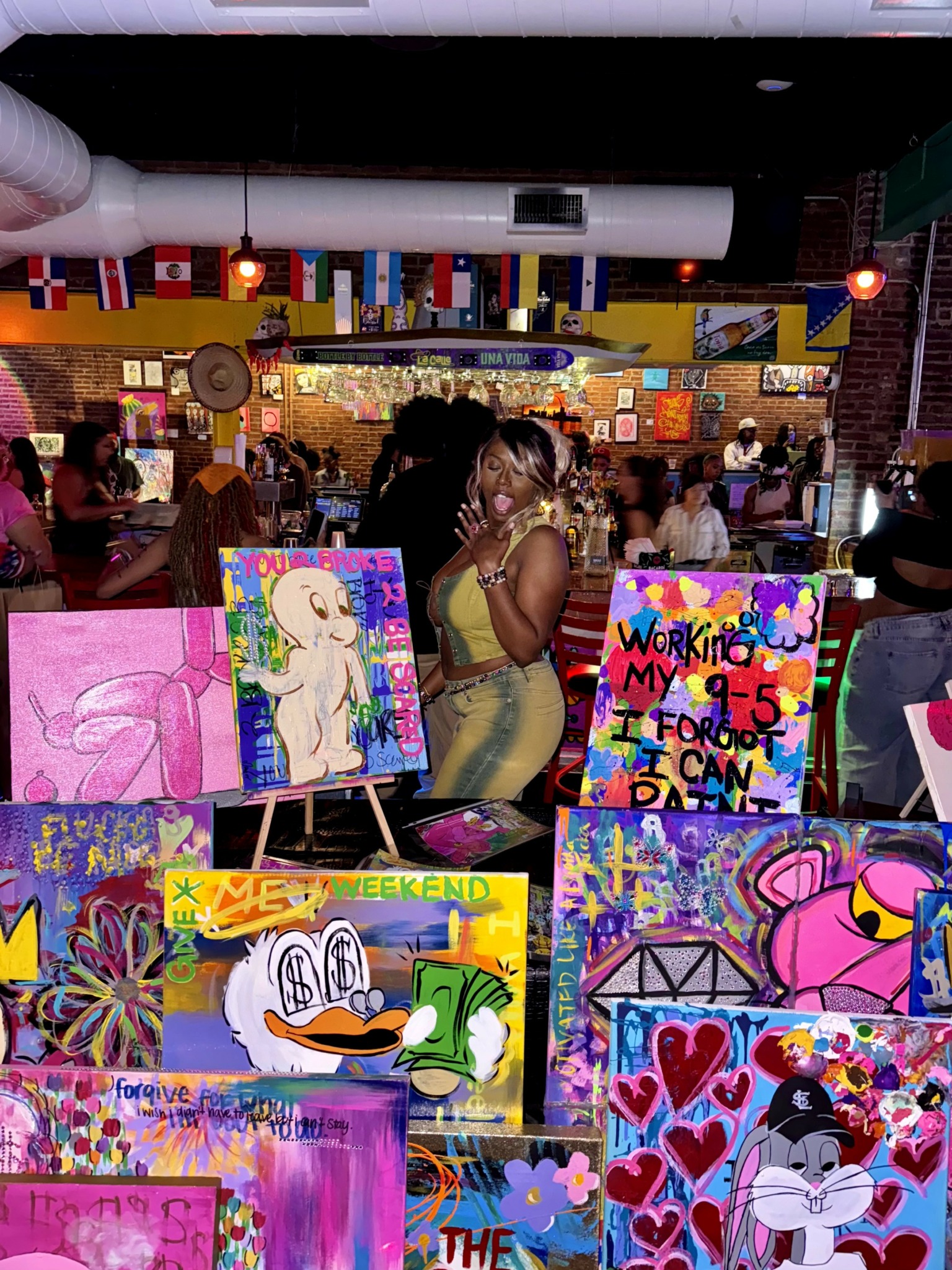 Since Covid began in 2019 I had dropped out of college at University of Missouri Columbia (Mizzou). Discouraged with the way school was going I had tried to just move and essentially start over. I had been trying to find my new home in Chicago, Arizona even Florida but nothing ever stuck or felt like home. I always felt like I had left a chapter unfinished. In 2023 I decided to buckle down finish my degree in Health Science with an emphasis in Rehab Therapy. As a first year college graduate on both sides of my family I had to finish to start a new tradition. Although I loved what I did working as a behavioral therapist I was never fully fulfilled. After work I would spend hours working on murals around St. Louis or personal projects I had at home. At that time I was hosting my own pop-up paint n sips about once a month around St. Louis and essentially forced my friends and anyone they knew to attend so that I could share my love of art with others.