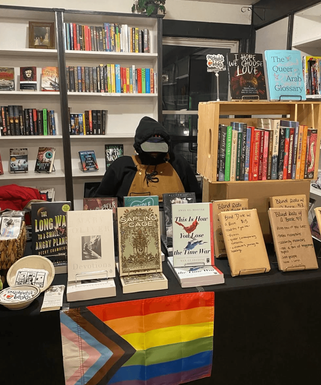 In addition to selling books, I also do a lot of social justice/community initiatives. I have a mutual aid pantry that is community funded with things such as clothes, food, toiletries, harm reduction tools, etc. I also have a solidarity fund that allows people to purchase books that they can’t afford by taking from a pot of money that is collected. I host free events like queer film series, dyke nights, queer craft night, and queer socials. I really try to make this space a haven for anyone who has felt like they’ve never been seen.