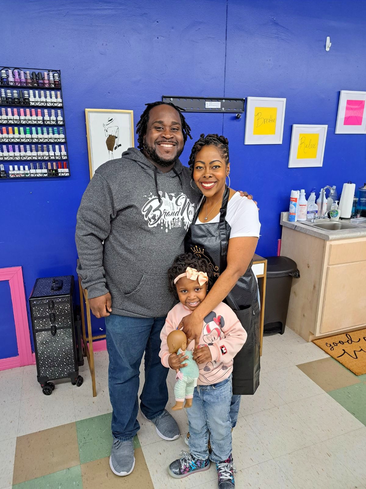Once the pandemic hit in March of 2020, I decided that I would start back doing my own nails and feet. Before I knew it, I stepped out on faith, with the support of my husband, Joshua, my parents, family, church family, and friends, and I ended up back in school. I graduated, got licensed, and started working. God kept opening so many doors for me, things kept happening so fast, and I started my business shortly after.