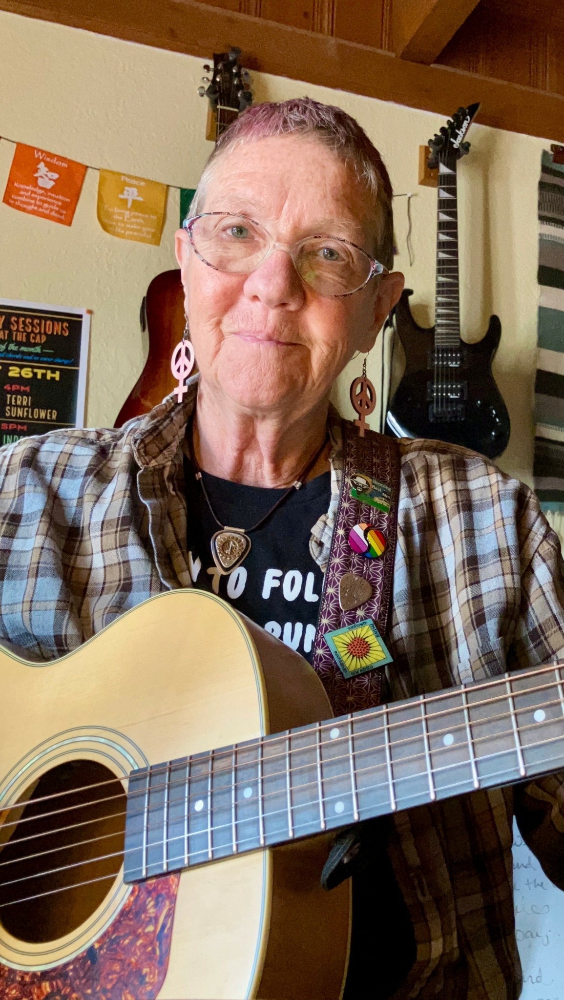 My stories aren’t unique but they are in need of telling. I’m a 60+ yo, sober lesbian songwriter that is willing to share vulnerability, courage and strength with some lighthearted fun in the mix. I want to inspire others to live their lives as authentically as possible via songs that have come from the crevices and cracks of the deep wells of living in both joy and sorrow and everything in between.