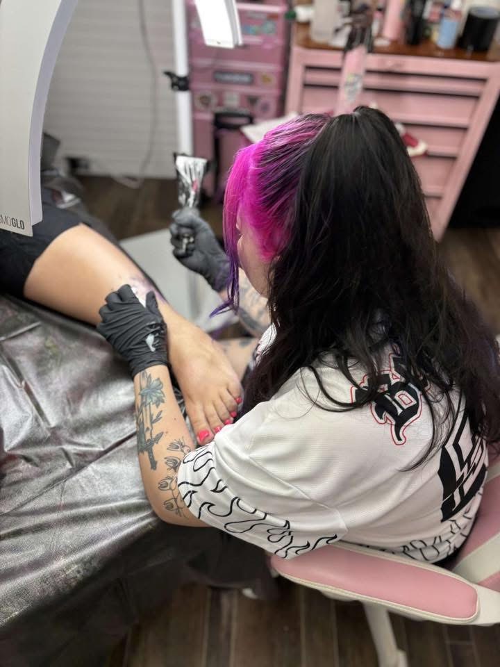 My dearest and closest friend started tattooing at a shop, and I was getting tattooed by her. When the shop went down an artist, she encouraged me to reach out to the shop to inquire about an apprenticeship. I’d been turned down by multiple shops before and was hesitant in doing so. When I was told no twice, I wanted to leave it, but she kept pushing me and insisted to her mentor that my artwork would speak for itself if he just gave me a chance and looked. And eventually, he did (Thank you, Abby).