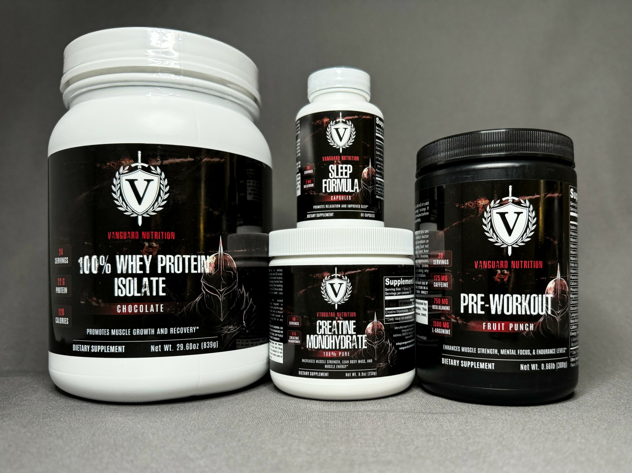 Vanguard is built on a mission to empower individuals through strength, leadership, and resilience. We offer a range of premium products designed to support both physical and mental growth, including high-quality apparel and performance-focused nutrition. Our apparel combines style with functionality, ensuring comfort and durability for both active and everyday wear. Our nutrition products are crafted to enhance muscle growth, endurance, cognitive health, and overall wellness, helping individuals reach their fitness goals and improve their daily lives.
