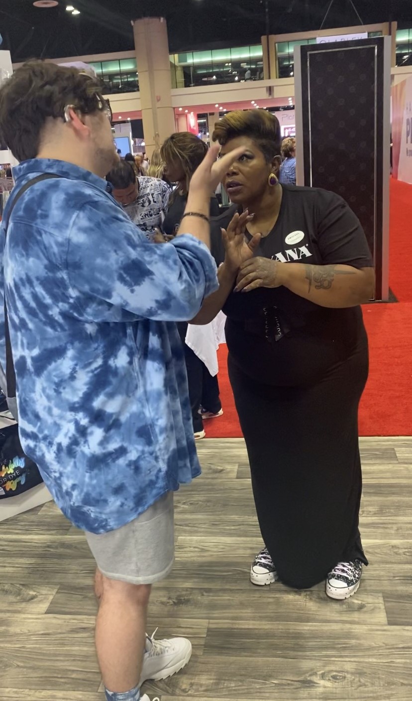 There was one moment while I was working a hair show that I met a stylist that was Deaf. There was no way I could tell until he started talking. There is a certain tone the Deaf have in their speech. It’s very distint. When he spoke, I immediatly started to sign. He was shocked! His face lit up. Someone in the industry that he choose knows his language. I knew I was doing the right thing. I knew this was my purpose to bridge the two worlds. Deaf only want access to thier intrest and career chices. I would like to be the first stylist to do so.