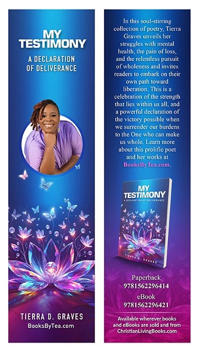 Ms. Graves is a 7-time published author. She published “Prism of Me”, “A New Twist on Old Traditions”, “A New Twist on Old Traditions Workbook”, “Depression Before Tea: Journey A to Z”, “My Testimony A Declaration of Deliverance” with Christian Living Books, Inc. She published, “I Lived to Tell It Testimonial Anthology”, alongside of 11 women of God as a Co-Author with: In Due Seasons Publishing Company. Her bonus book is The Record. She is a 2-time best seller and international bestselling author.