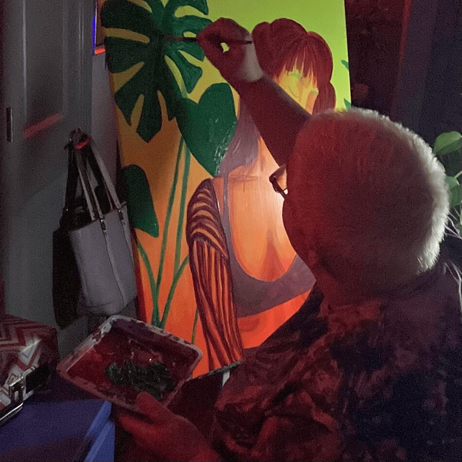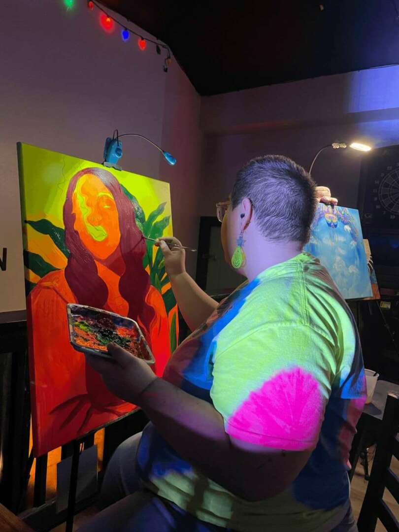 There was a moment for me where everything had a serene stillness. I remember the wind dancing in the old trees above us, the bar lighting glowing behind me as I painted next to my friend, and hearing some of the first people say they resonated with what I was creating. I still can’t put words to the emotions that washed over me, but I knew at the end of that night I had to keep doing this for as long as my body and mind will let me.