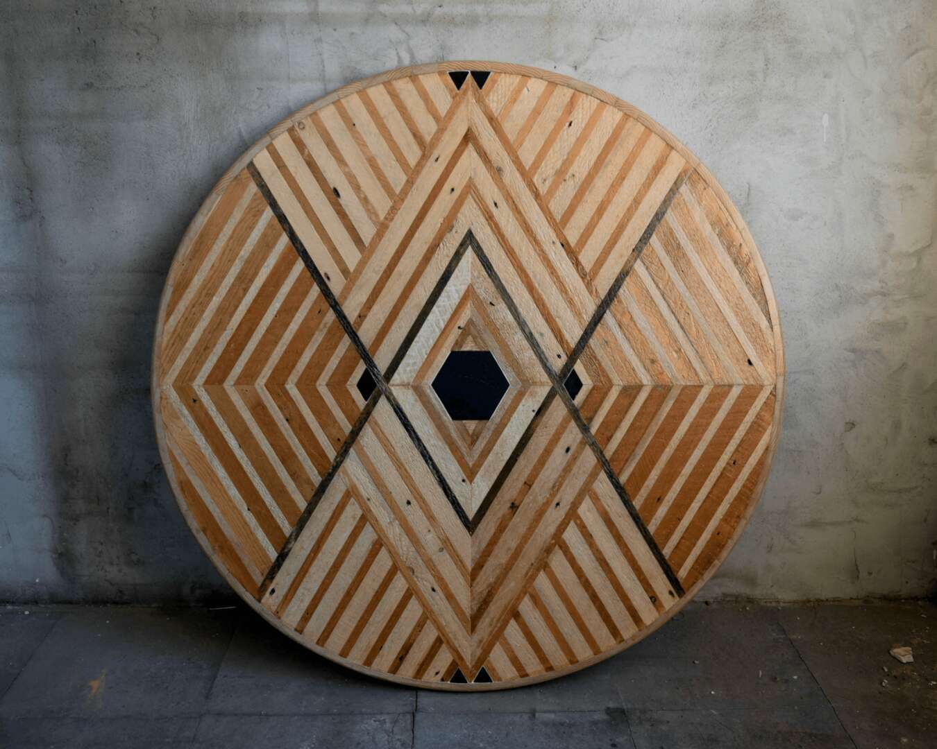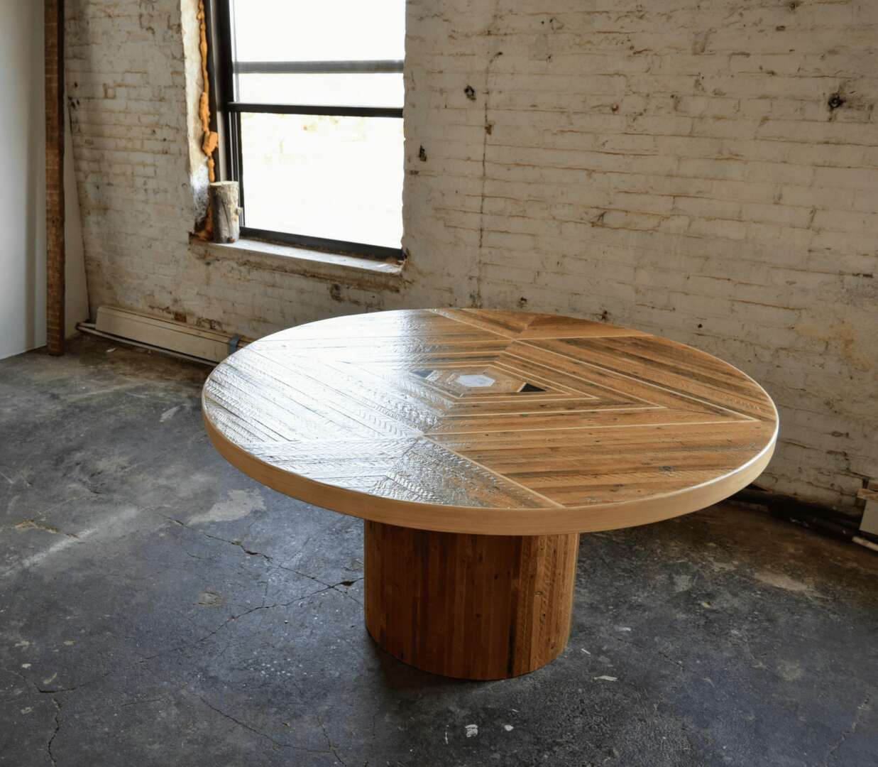 I do manufacture all of my products at the moment, though I am looking to grow my team and bring other artisans on board. My decision to have other people assist with executing the physical work comes from knowing just how difficult and time consuming it can be to be the only one fabricating work at this scale. Especially as a single mom. It’s no easy task! But the story of how this started is pretty unconventional, as is most of what I do in life lol. When I started, I initially wanted to have others make my designs for me and I actually found someone who I thought was capable of doing the work. I was very wrong. The table that I had designed did not come out the way that I wanted and instead of finding someone else to make it, I decided to do it myself. At that time, I didn’t have many connections or know anyone else in this industry, so I was very easily discouraged from this first time fail. So I went out and bought my first table saw at Home Depot, watched videos and learned how to use it. I worked in the alley between my apartment building and the neighboring building and hauled material up and down the stairs a few times a week. It was brutal, but I kept at it. I started with some small things like coasters, and quickly jumped into making table tops/ wall art. Thankfully, I understood how to make things given my design degree, but having lacked any real life experience in fabricating my own product made production a lot harder for me in terms of efficiency. From a business perspective, time was costing me a lot of money. Granted, it may not have been the best way to start, but I learned so much from the experience.