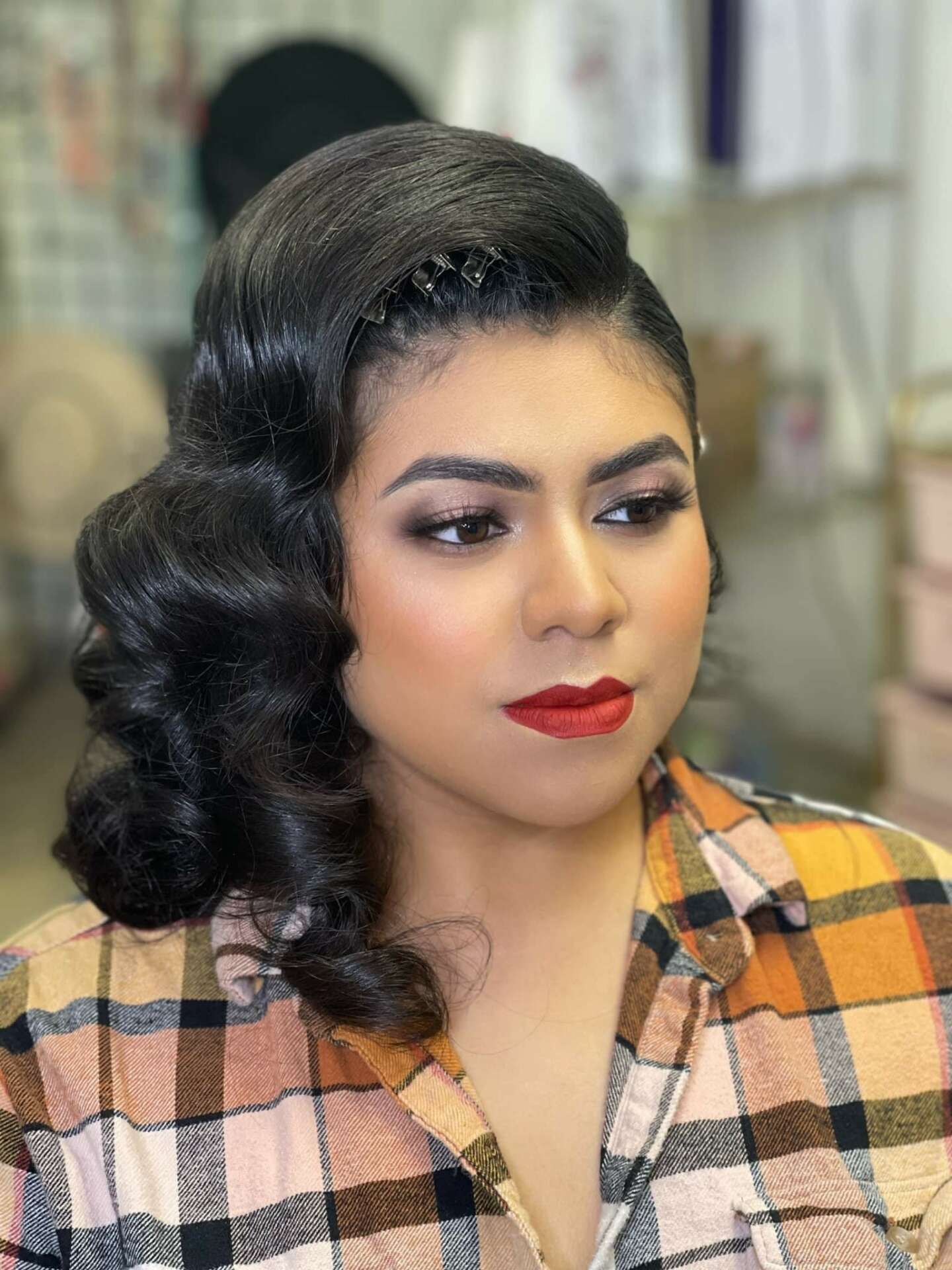 I indeed went through many pauses in my career because well … just life in general , trying to be a good parent and wife and lets not forget regular household needs in our daily life all while trying to toggle my career/business. The most recent unfortunate event was in November of 2019. Our family had a house fire in which everything was completely lost and well among everything were all of my hair and makeup things. I thought I was completely done with my hair and makeup career as at that moment I couldn’t see me being able to repurchase all my kit because of course we needed to start from zero we had nothing because everything was either burned, water damaged or smoke damaged. I was quite sure in my mind that was it for me I rushed to find other available Hair and makeup artist to take over upcoming appointments I had at the time as of course we were right in the beginning of holidays and well I was busy. In the middle of everything and feeling defeated A Wonderful fellow Hair & Makeup Artist and now Salon owner Gisela Gaxiola reached out to offer support and help and she did not accept taking over upcoming appointments instead she offered me her makeup kit and tools and said you need to work to make back what you need to continue with your career and business. ( a few others offered to rent me their stuff or sell me supplies at a discounted rate and even offered to come along with me if I could pay them half of the profits) but she selflessly supplied me with everything I need to complete all my appointments and gain back funds for that particular necessity. Her support and motivational act were all I needed to reset and push forward because my hands and will were what I needed along with her tools to not give up and continue my journey it was hard and I was definitely overwhelmed thinking how will I ever repay this wonderful woman for providing me with the support I needed while trying to regain all my own tools and products but I pushed forward and with the support from my amazing clients here we are now past that unfortunate event and of course COVID still working hard and gaining new clients.