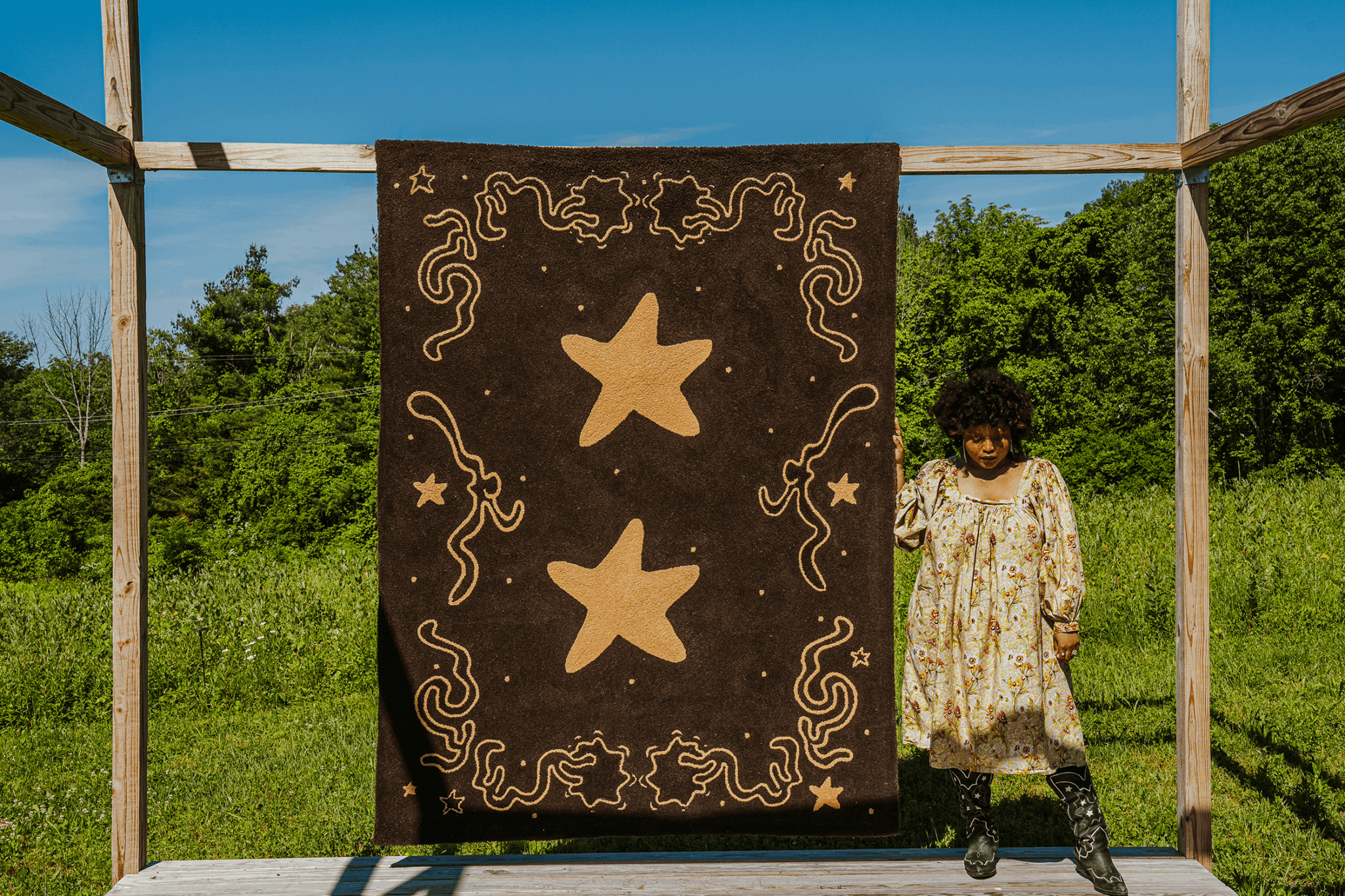 In 2018, Tiernan and I launched Tuft the World as a husband-and-wife collaboration. We were first introduced to tufting by a friend who had worked as a carpet designer. Tufting, which involves punching yarn into a base fabric using a handheld tool, has actually been around for over a century—but when we discovered it, the materials and tools just weren’t accessible to the average person.