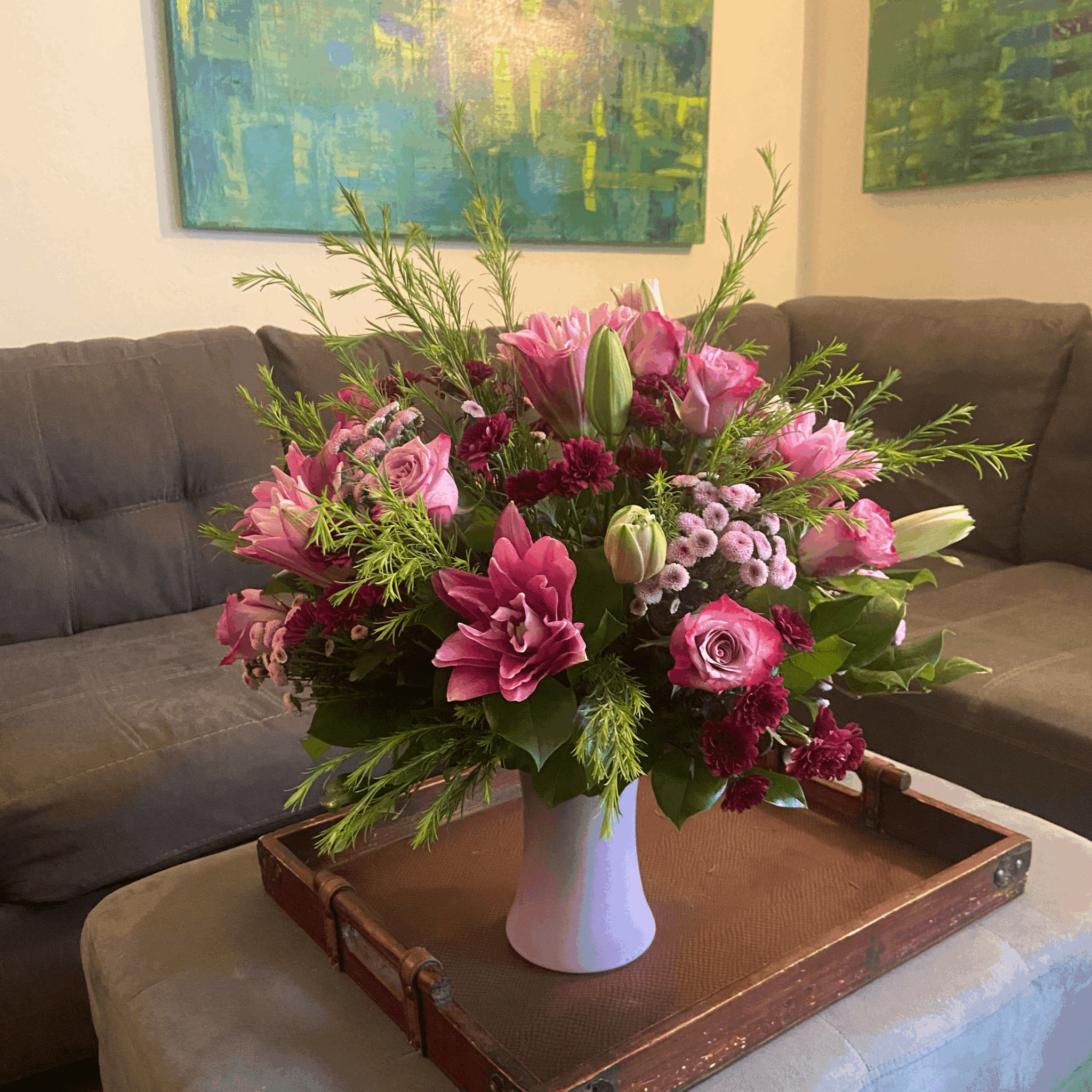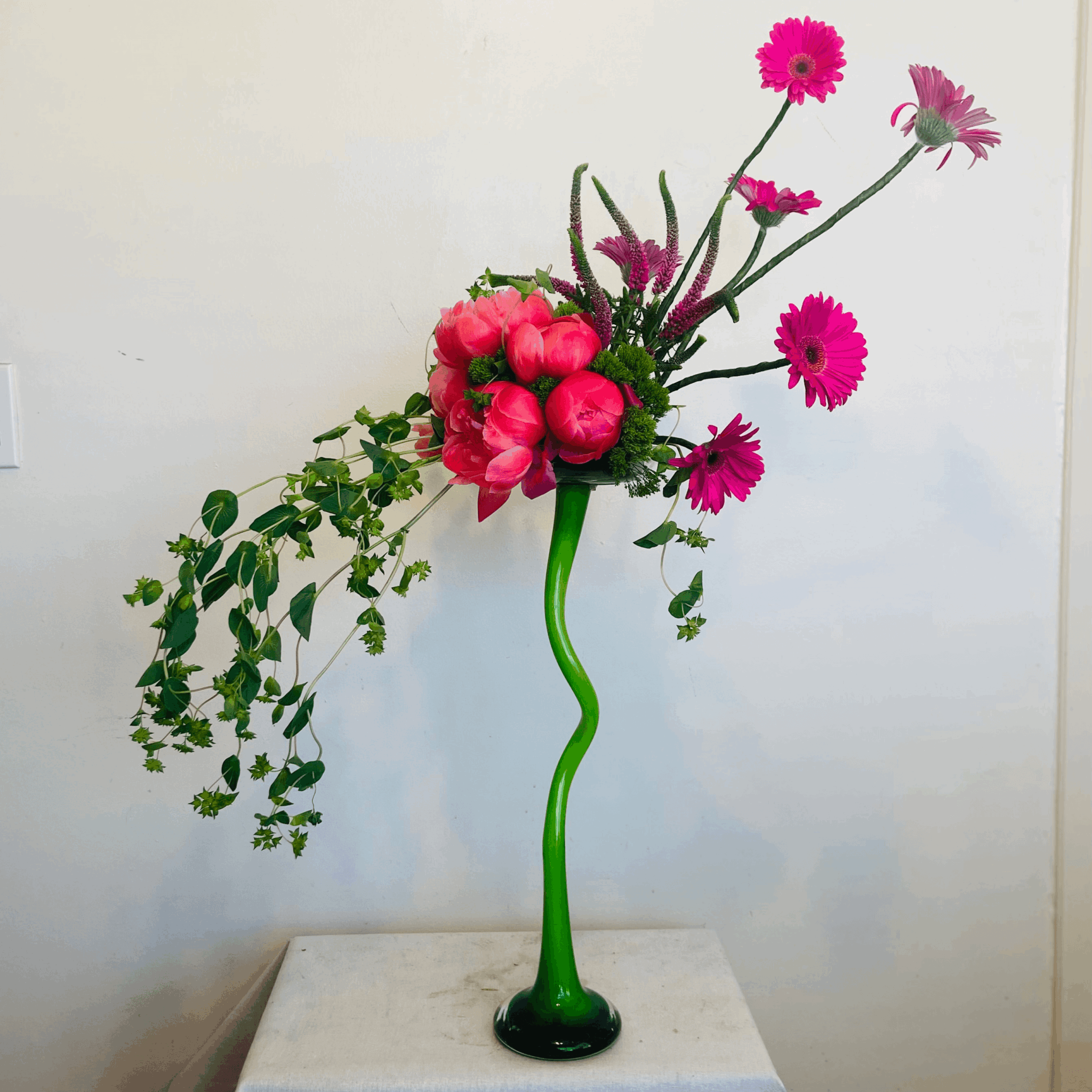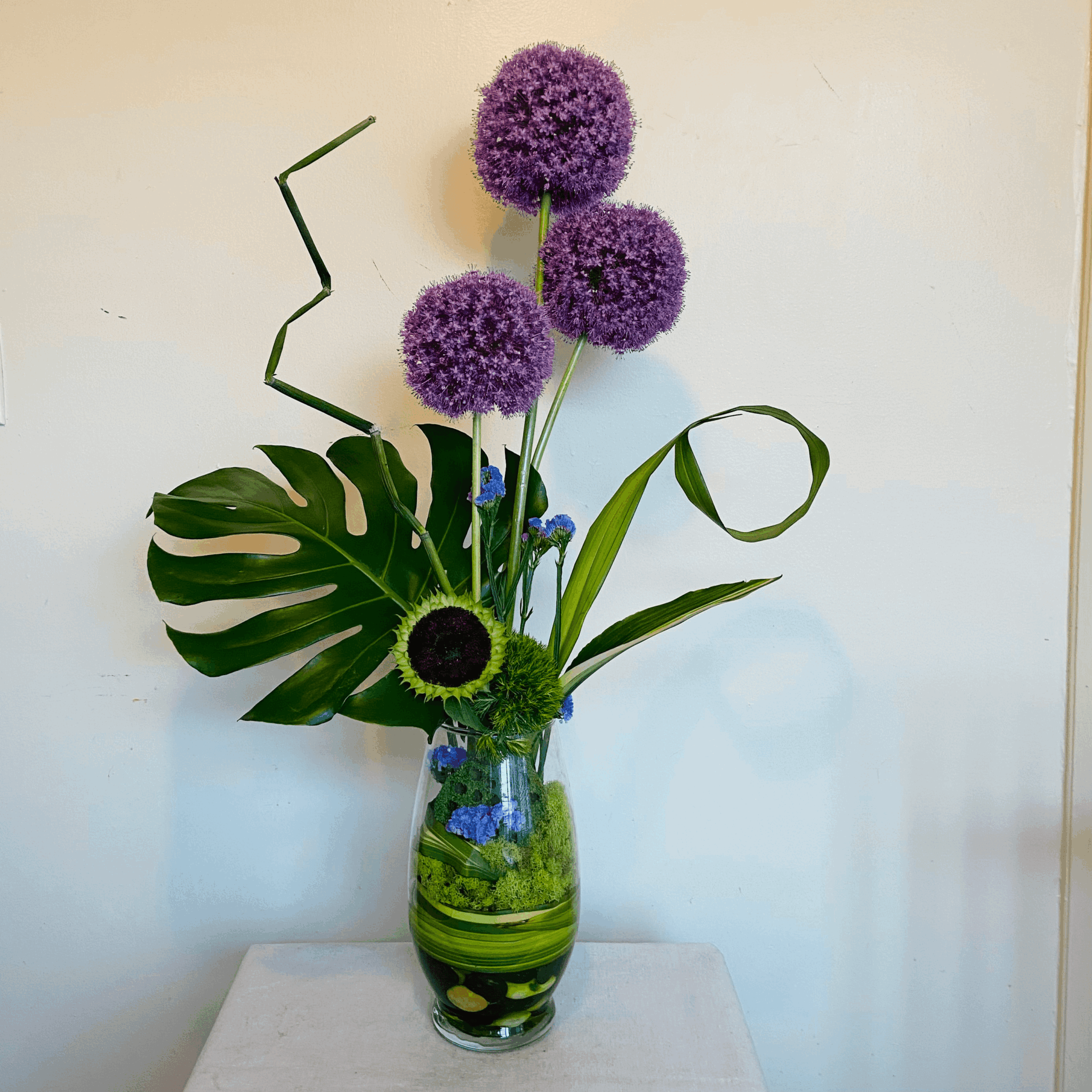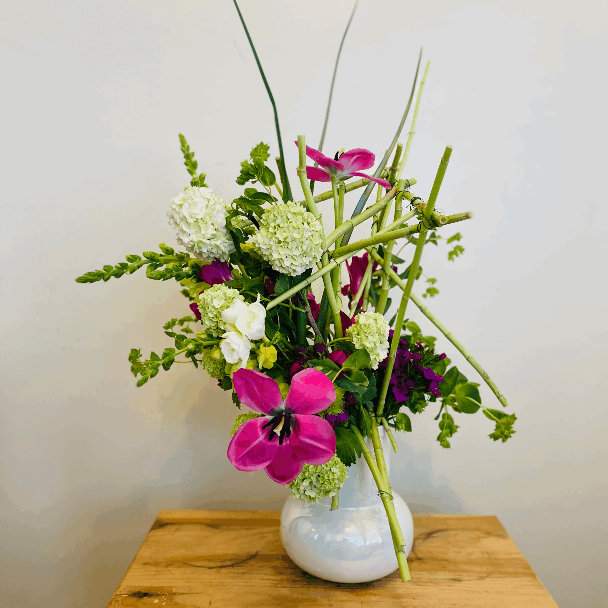 I offer sentiment designs for every occasion as well as showcase arrangements that invite admiration in both professional and personal spaces. I also have some fun subscription options. I created the Never Forget Subscription for busy working people where I keep track of and deliver flowers on three important dates to whomever they choose so they have one less thing to remember. Another fun subscription I offer is the Pet Parent Love Subscription. I know so many childless people whose pets are their kids so I created this option for pet parents to receive flowers and a card from their pet on their birthday and either Mother’s or Father’s Day. I also design for various office environments, conferences, restaurants, airbnbs, hotels, micro-weddings and elopements.