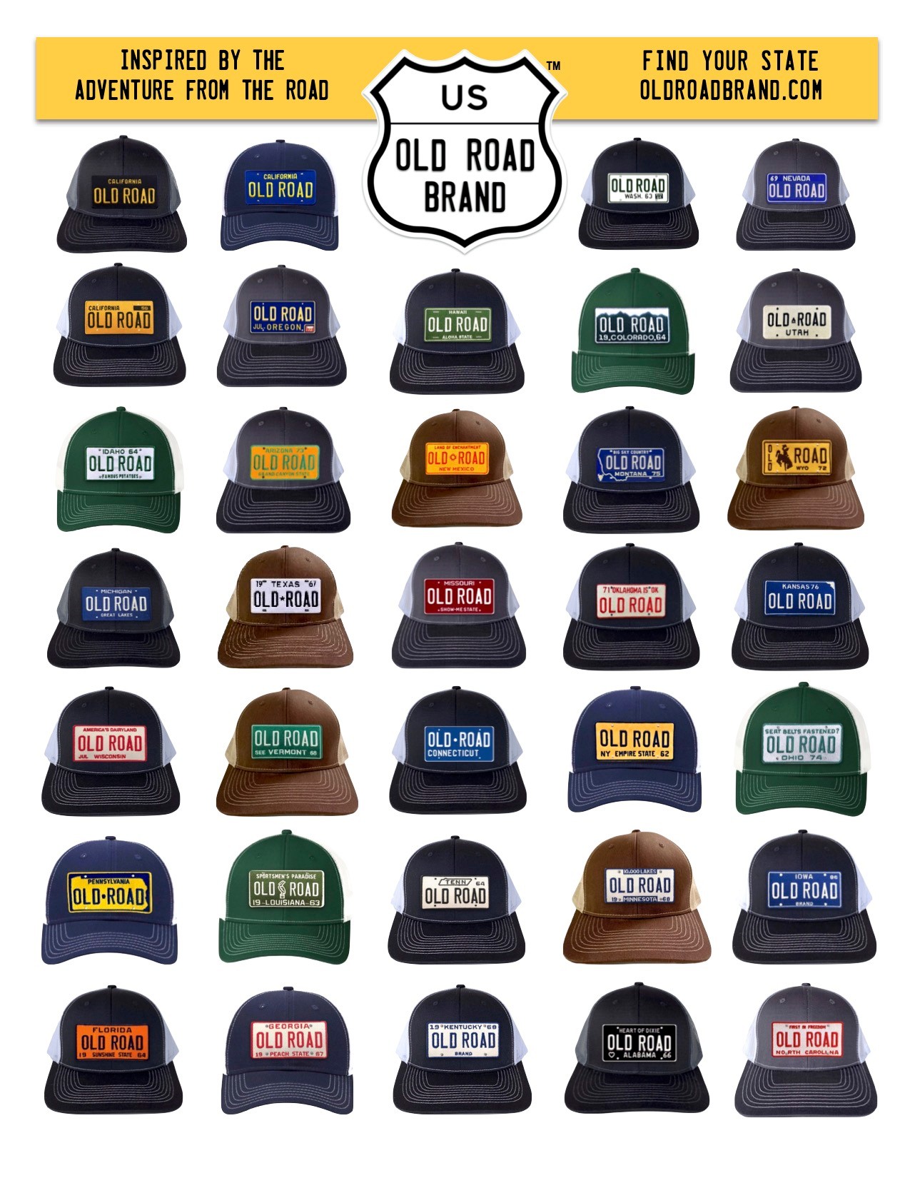 While the name “Old Road” was conjured up by a connection to family history and travel, I had been working on concepts for a brand of apparel that included hats. My original thoughts around a hat with a vintage license plate had a name on it that nobody that I had run it by could make any sense of it. So the idea went into a drawer. When the name Old Road Brand finally came to me, I thought the only way to make it a reality would be to throw some money at the project in order to make prototypes. It really comes down to a simple decision that to pursue an idea or a dream, you actually have to make action decisions that propel an idea forward.