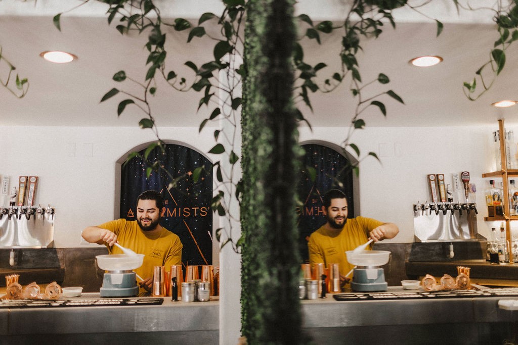 Around 2014 we saw a major change in the dining scene here in Paso Robles where wine wasn’t the only contender for our travelers attention; the craft cocktail movement had finally found a solid foothold. Our current project is a collaboration of ideas from career bartenders and has been our dream to watch it come to life, but when it began we were all just becoming friends spending time at each others bars getting to know each other on nights off and bouncing ideas off one another. It created this really cool “rising tide floats all boats” perception where the bar community here became very close and many nights off became R&D evenings with the friends we eventually opened The Alchemists Garden with. This organic growth has helped the community here foster a brilliant and wonderful love of hospitality that allowed us to push the boundaries at every turn and us in turn see such an incredible acceptance of new and unique.