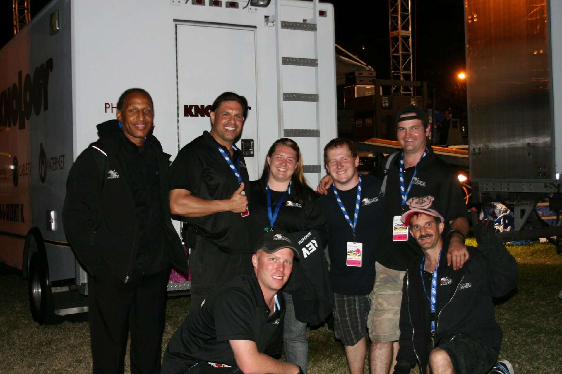 I started my business with my brother Alan. Then after 6 years I broke off on my own to create Espo Productions in 2007 and he kept his business Peak Technology Group. I’ve never had deep pockets to start up fast or dive into any of this business. I’ve had to build it slowly by myself and I’m still the only full-time employee here. I have a “call list” for all my larger jobs, or jobs I need to cover and also, we team up with other companies to get work completed. I took in friends first, some had experience, and most we taught after learning even more ourselves by getting more work and watching. We definitely are a company that learns as we go and grow. I had everyone that was totally new or not referred by someone I knew come intern for a day with us to see if they worked well with us and our system. Now I have a large call list to use for crewing. I just wanted non-smokers, (they take too many breaks when we’re busy. Nowadays the smoking pen helps so they don’t have to leave the area to go smoke.) fast learners, and even people with experience to share their ideas with us.