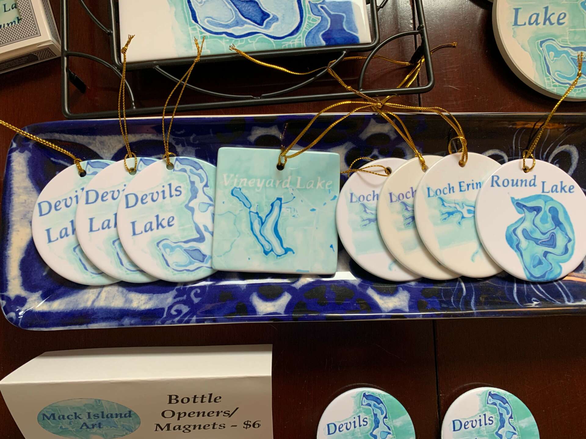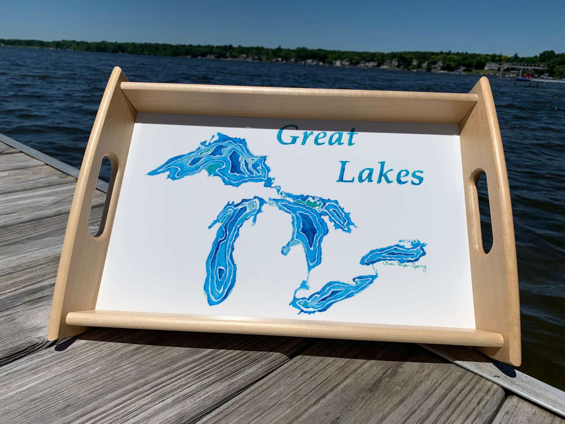 After trying a few different mediums, I landed on watercolor painting. Specifically, I started creating contour maps of local lakes in southern Michigan. After selling a few paintings to friends via social media, I wanted to leverage those images again. My first idea was to create pillows from those lake paintings. From that simple start, my product offerings expanded to mugs, ornaments, t-shirts, coasters, puzzles, and more! The products are all made by various third-party companies that produce high quality products.