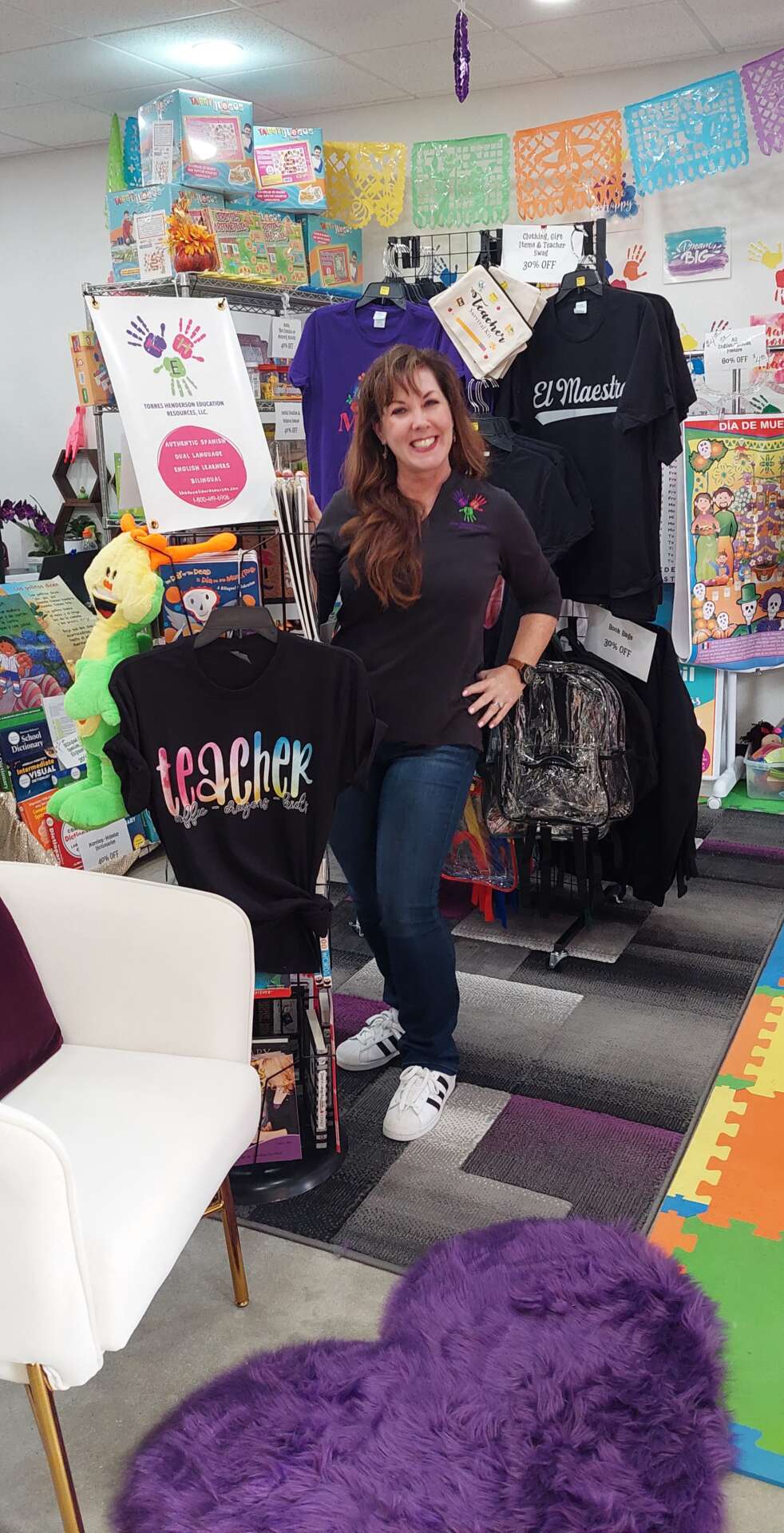 So my name is Trina Kay Henderson-Torres. I am a female entrepreneur with a family and a former career as a bilingual school teacher. I have been a teacher most of my adult life, but in various ways. First in the classroom, then in the sales and consulting field, then as a University professor, and now as an educational materials wholesale/retailer selling to US school districts. I work with a diversified portfolio. Wholesale and discounted products to school districts means having government contracts, MWBE certifications and credibility in the industry. Retail requires a ton of marketing, lots of pop-up opportunities and in and out inventory. Online sales requires a constant connection to the virtual world. Social medias, blogs, product development, unique offerings, TIK TOKs and more! Our main buyers are educators in the field of teaching languages mainly English and Spanish. Our clients know and love us for our expertise in Spanish materials and our customization of teacher kits to make their teaching tools worthy of their instructional needs. Our brand is T-H-E Resources (Torres Henderson Educational Resources, LLC) and we are based in Arlington Texas, just two-blocks of Globe Life Center-GO TEXAS RANGERS! Now in the World-Series!! We love being 2 blocks away from them and the Dallas Cowboys AT&T stadium! What can I tell you about our brand–we love kids, we love getting the best materials into the hands of school districts and teachers so that kids can enjoy and really learn with the materials we provide.