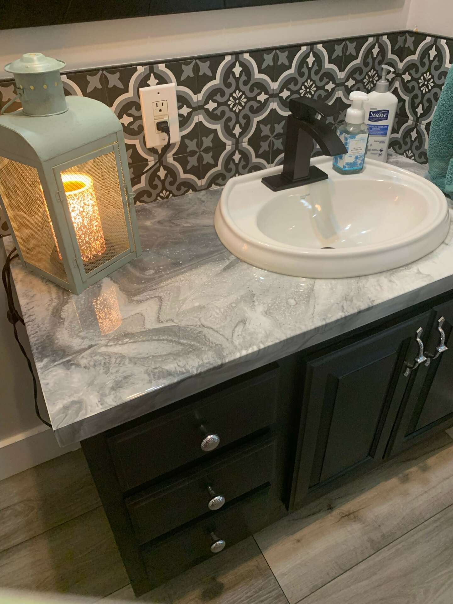 I would say my first pieces are art were nice, but when I did my first countertop that was a wow moment! I did my first countertop in 2021 that changed somethings for sure. I love working on larger projects the space / freedom is nice. A countertop is a huge project they can take up a whole weekend or a few days. This opened the doors for getting asked to do resin floors or travel for countertops. This also put more faith in my art capabilities for just larger canvas/board work. The amount of designs that can be created are endless and I love that! I have been asked to create marble designs in countertops even granite! There is a pretty big difference in pricing when it comes to marble vs resin. We love cost efficiency.