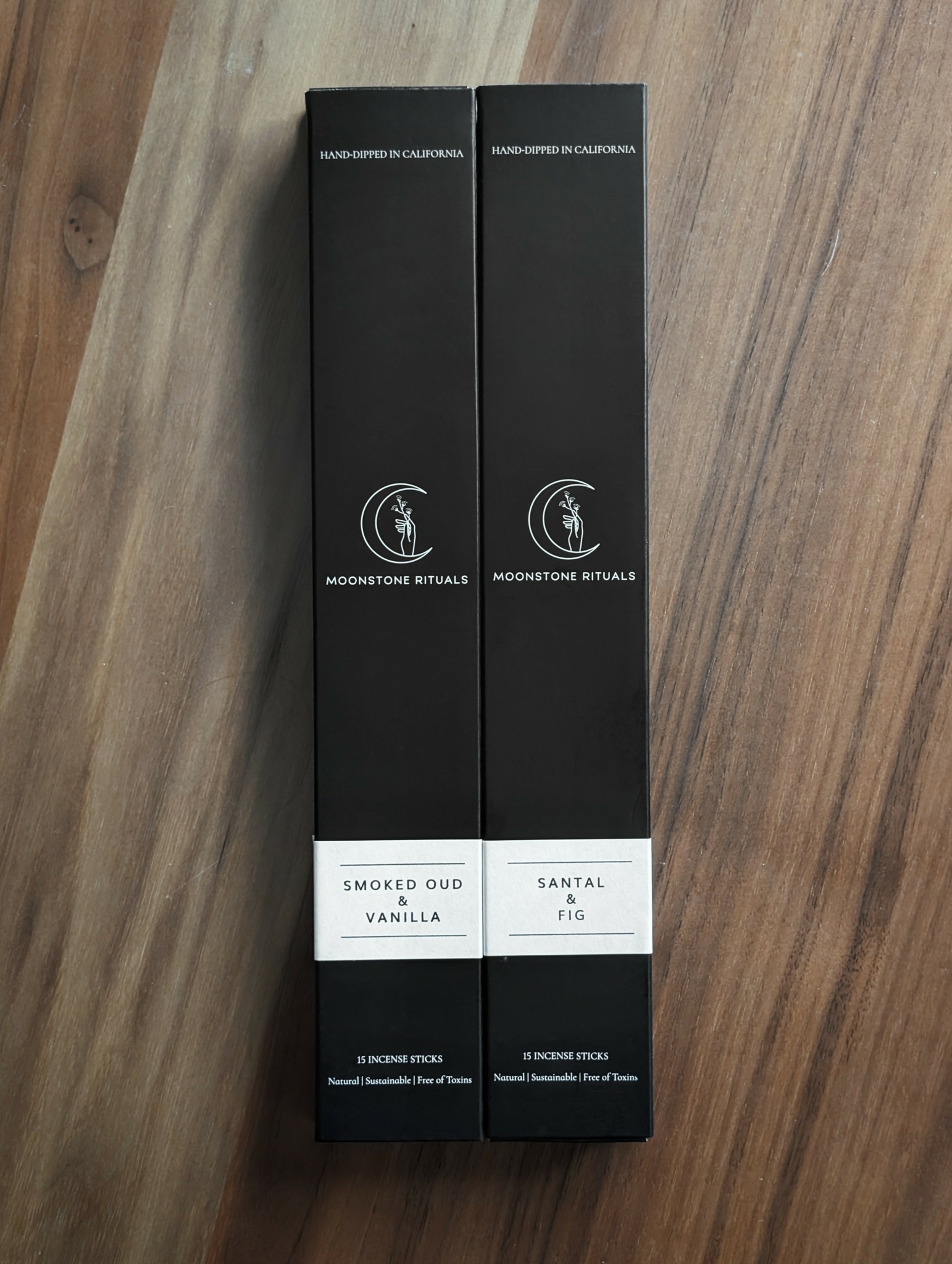 Moonstone Rituals was born from a desire for clean ingredients. Each soy wooden wick candle is handcrafted and hand poured in Los Angeles as is our charcoal based hand-dipped incense. Every ingredient is considered when creating products in our home fragrance line. It all begins with an idea. From here, it evolves, through rigorous testing and feedback from our cherished friends and family. We strive to create home fragrance offerings that are unique in scent and may help anyone add a bit of ritual to their daily lives.
