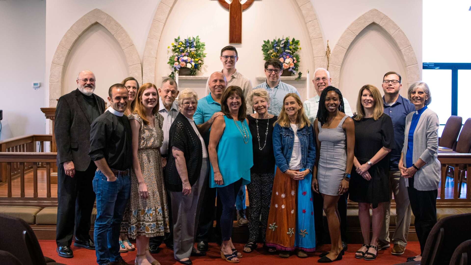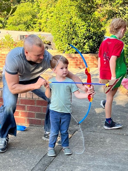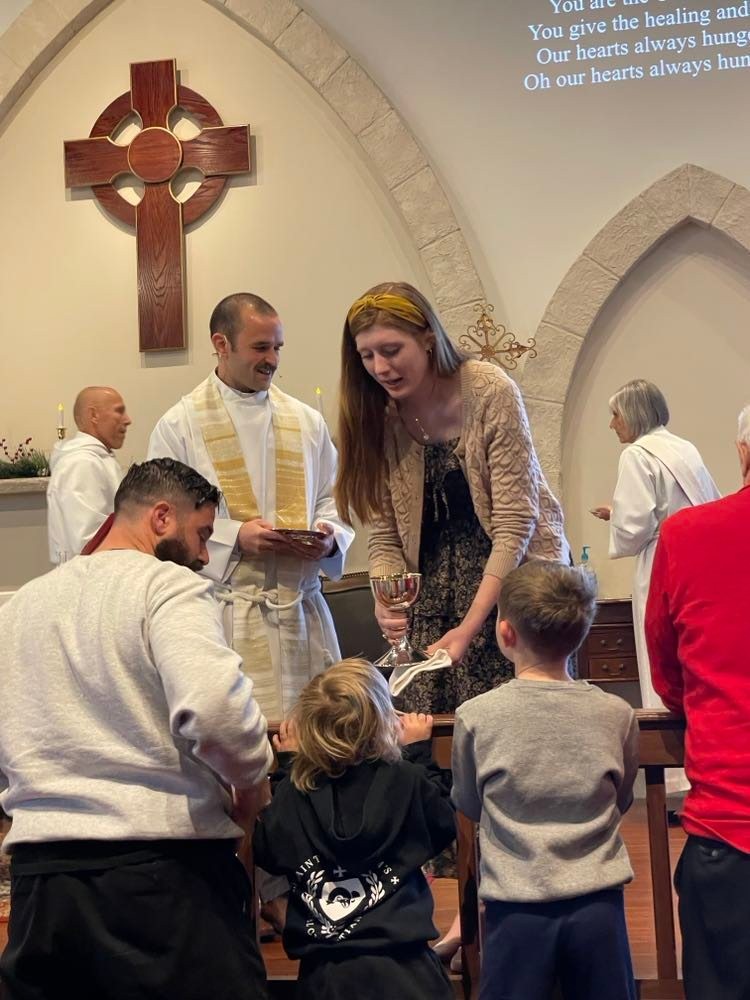 Tyler and his wife, Jane, serving communion. Group Photo: Confirmation class Three Ladies at a summer churchwide gathering at Fr. Tyler and Jane’s house: Faith Powell, Diane Smith, and Marissa Woodall Greg Owen showing a youth how to shoot a bow at the church’s weeknight family ministry gathering. Table Photos: 13 newcomers came to Fr. Tyler and Jane’s house for brunch.