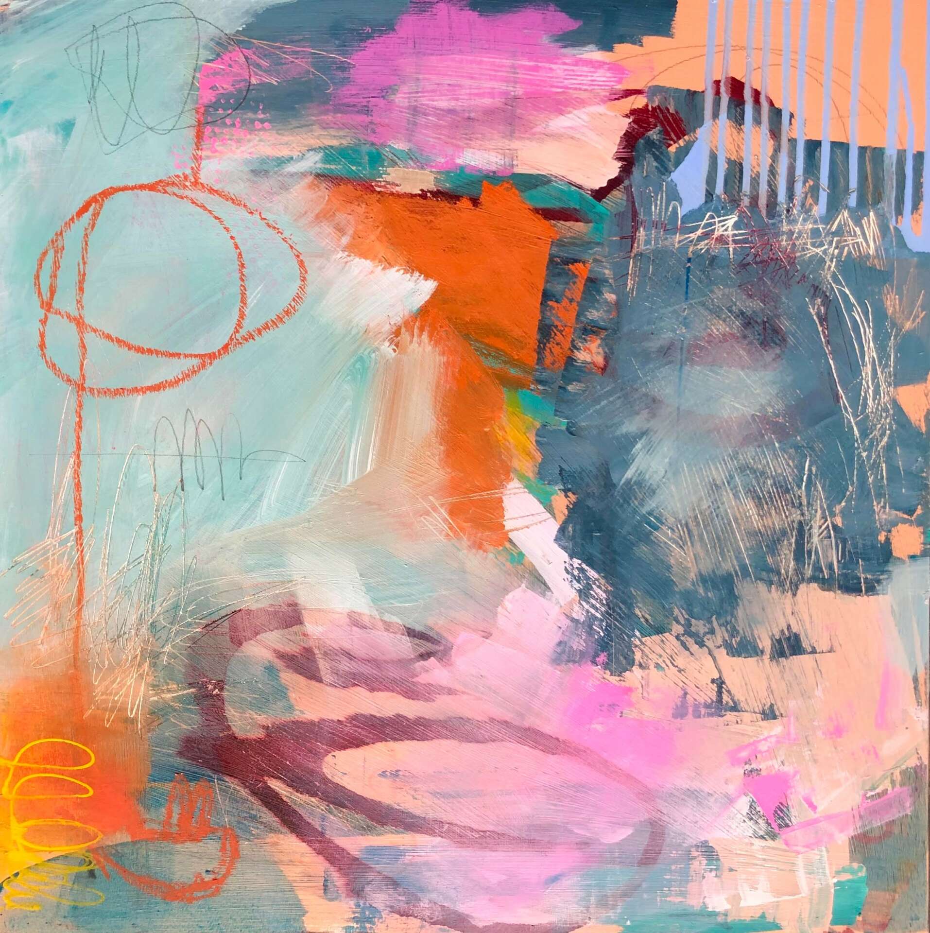 I had been painting coastal landscapes with Encaustics wax since 2010, and I had always wanted to branch out into acrylic painting. So, during covid, I made it my goal to learn everything I could about abstract acrylic painting and started to get comfortable with the medium. I began selling my artwork regularly at Gillyweeds and had a gallery in Apalachicola, FL. contact me to showcase my artwork there. I am now in several galleries and have collectors from all over purchasing my artwork.