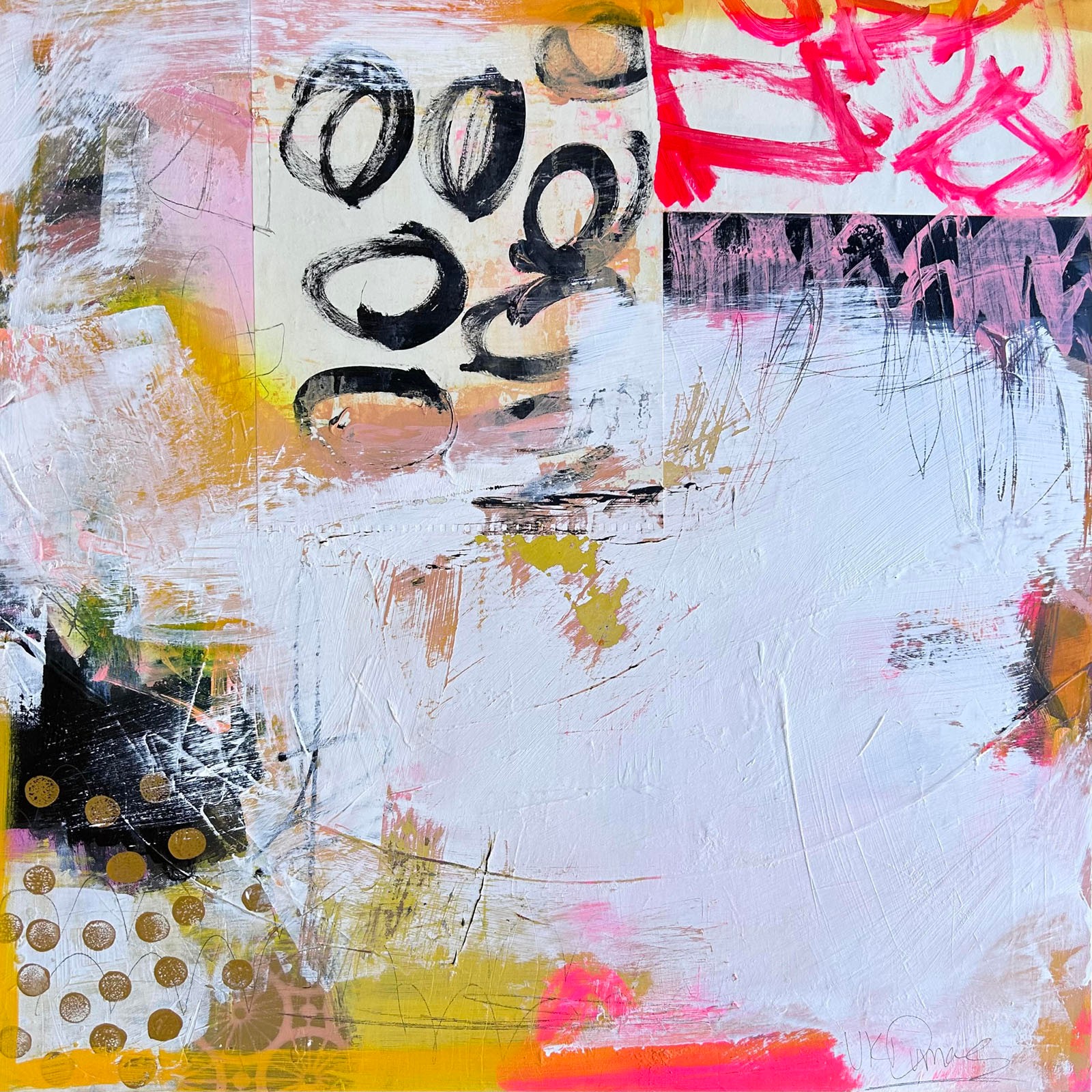 My name is Valerie Dumas and I paint abstracts. I am also the owner of Gillyweeds, a small lifestyles boutique in a suburb outside of Atlanta. Apart from clothing, I sell several home decor pieces, and I just wasn’t finding the artwork that I liked to sell in my shop. All the “art” in the retail shops near me were either churches, angels, cows, or chickens. I do NOT have a farmhouse store!! I am a Floridian who craves bright tropical colors so I was determined to make my own artwork to sell in the shop.