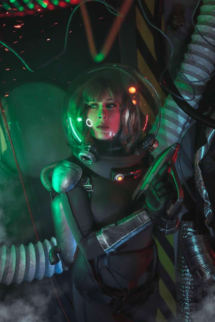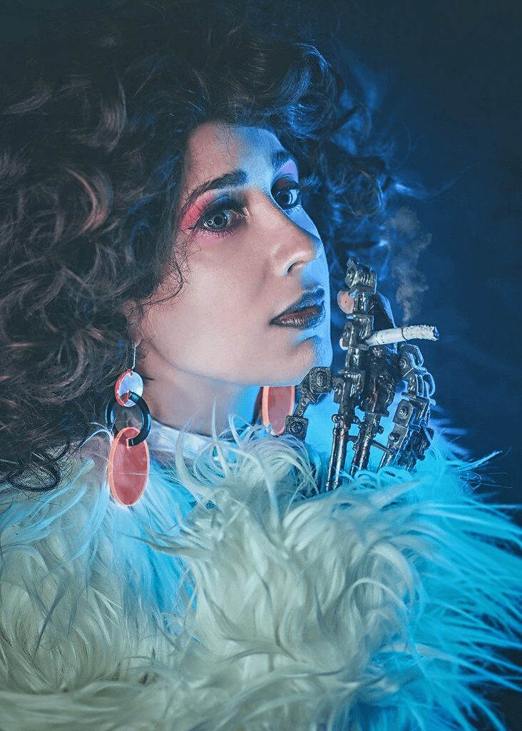 I love Sci-Fi movies since I was a kid, specially retro Sci-Fi, so on my way to start sewing and designing, I started cosplaying my favourite characters from cinema, TV & literature. I teamed up with the amazing photographer Monsters Inside and now I’m dedicated to bringing to life my favorite characters and creating new designs for original pinup photoshoots inspired on Space Age, Cyberpunk and retro-futurisms.
