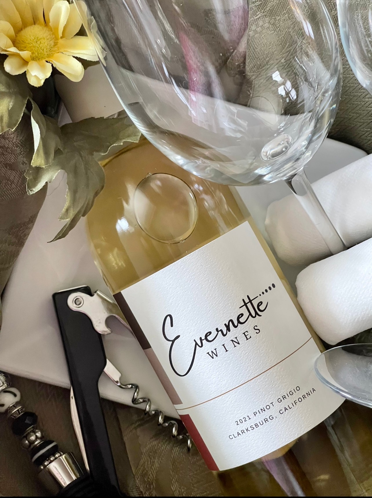 The label design captured a modern/contemporary look, with clean lines and showcase the brand colors and logo. The romance copy, which is the back label information, is where I continued the reminiscing moments of Evernette, my grandmother. Our 2021 Pinot Grigio launched in May 2022 right before my 50th birthday.