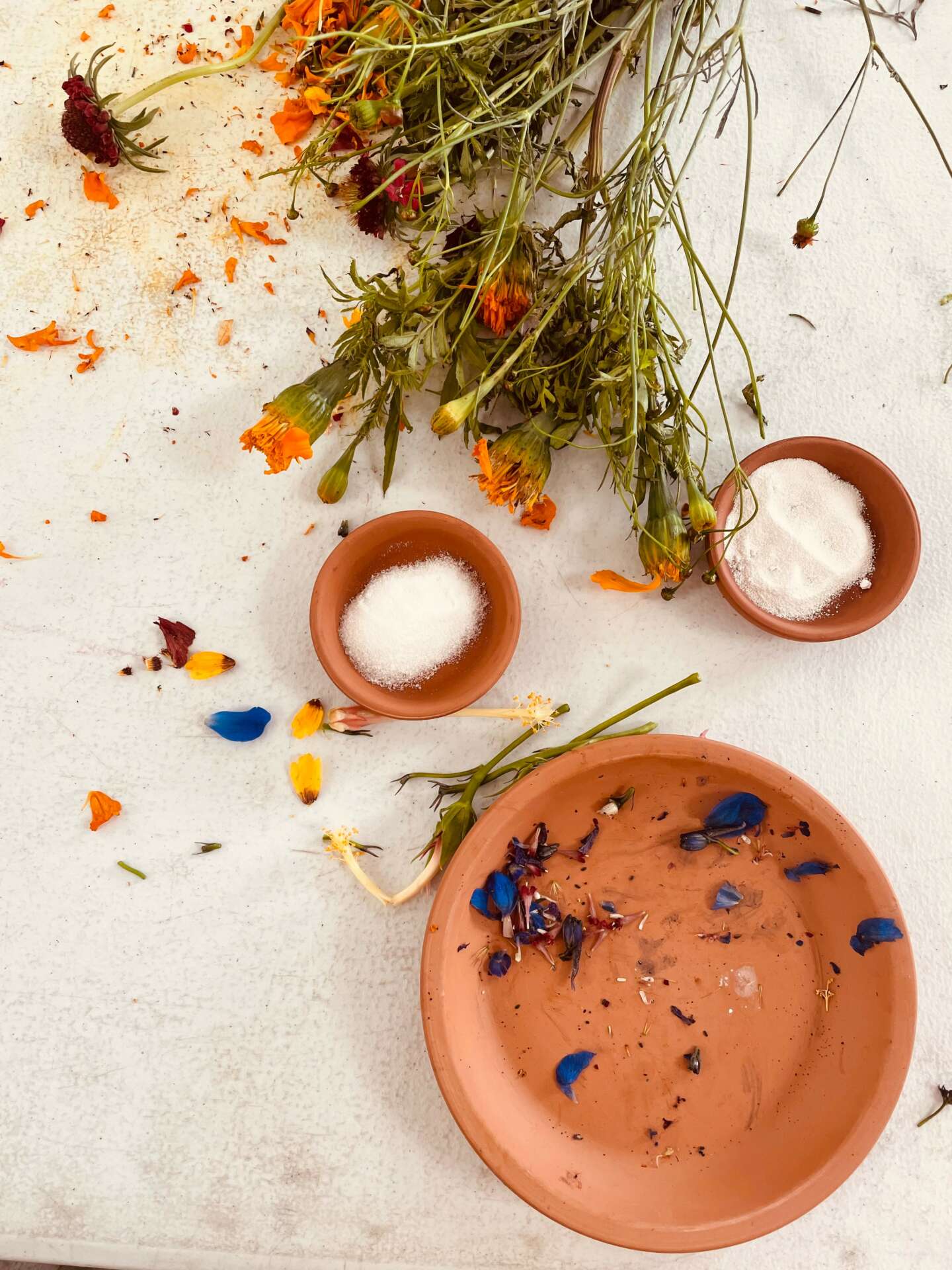 Botanical Spells is something that I am very proud of. I am passionate about health and plants, so being able to merge these two together feels really good. I am a natural dyer and artisan. I hand dye garments, and silks using only plants and Earth’s elements, I forage and collect flowers/plants from local farmers and help to take invasive species from the environment. For example, here in San Diego, Eucalyptus grows abundantly. It is a great dye plant, and also invasive. So by foraging it for my business, it also helps the environment thrive.