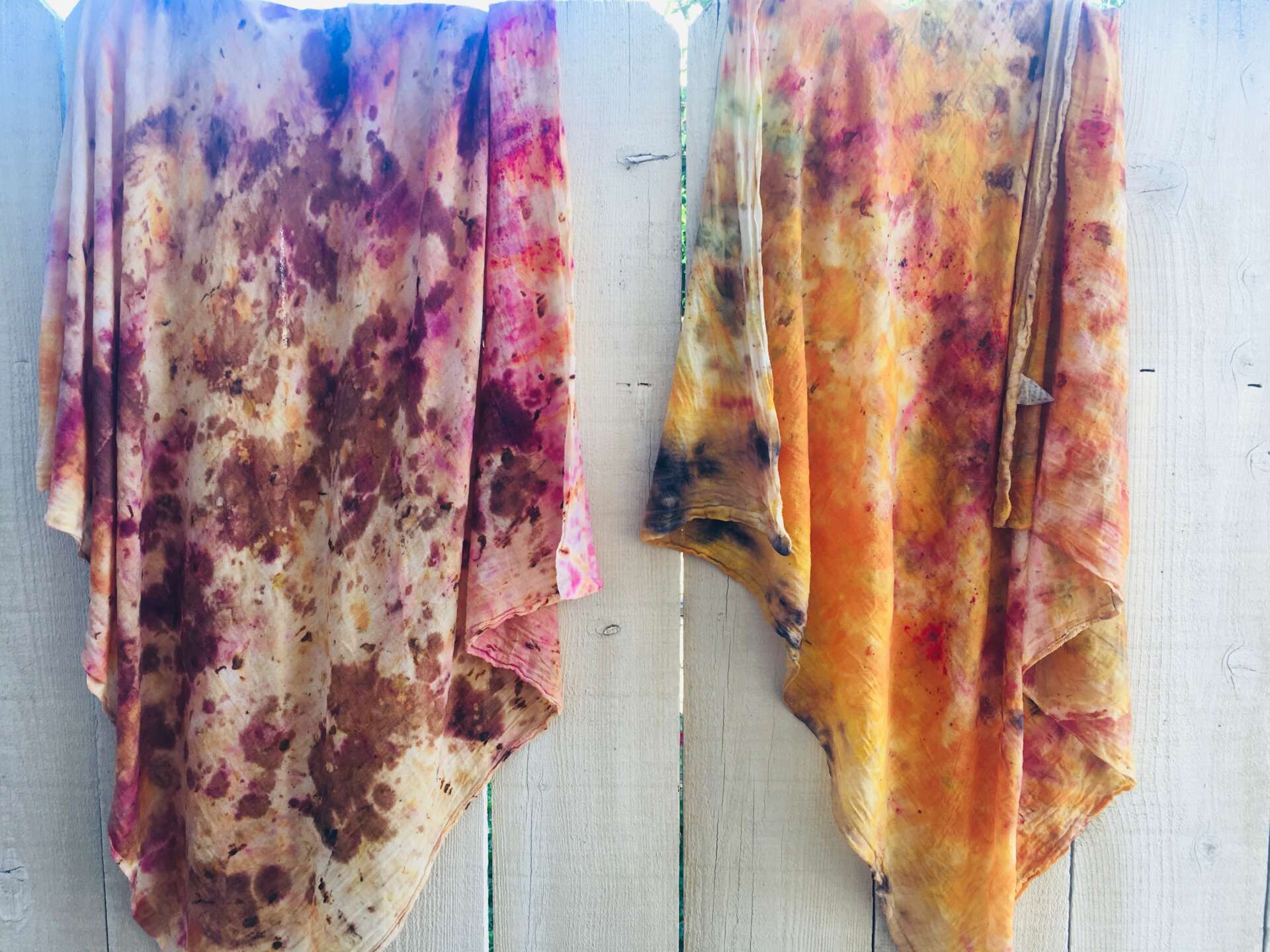 Not only do I create one a kind, wearable plant dyed garments, but I also have a beautiful service for newly married couples. Instead of letting all the flowers go to waste, I use them to dye you a one of a kind silk garment (or multiple garments) using your flowers. This is a great way to preserve your wedding flowers and turn them into a unique, sustainable garment you can have forever! This is one of my favorite services, and I have been able to create some beautiful pieces for beautiful couples!