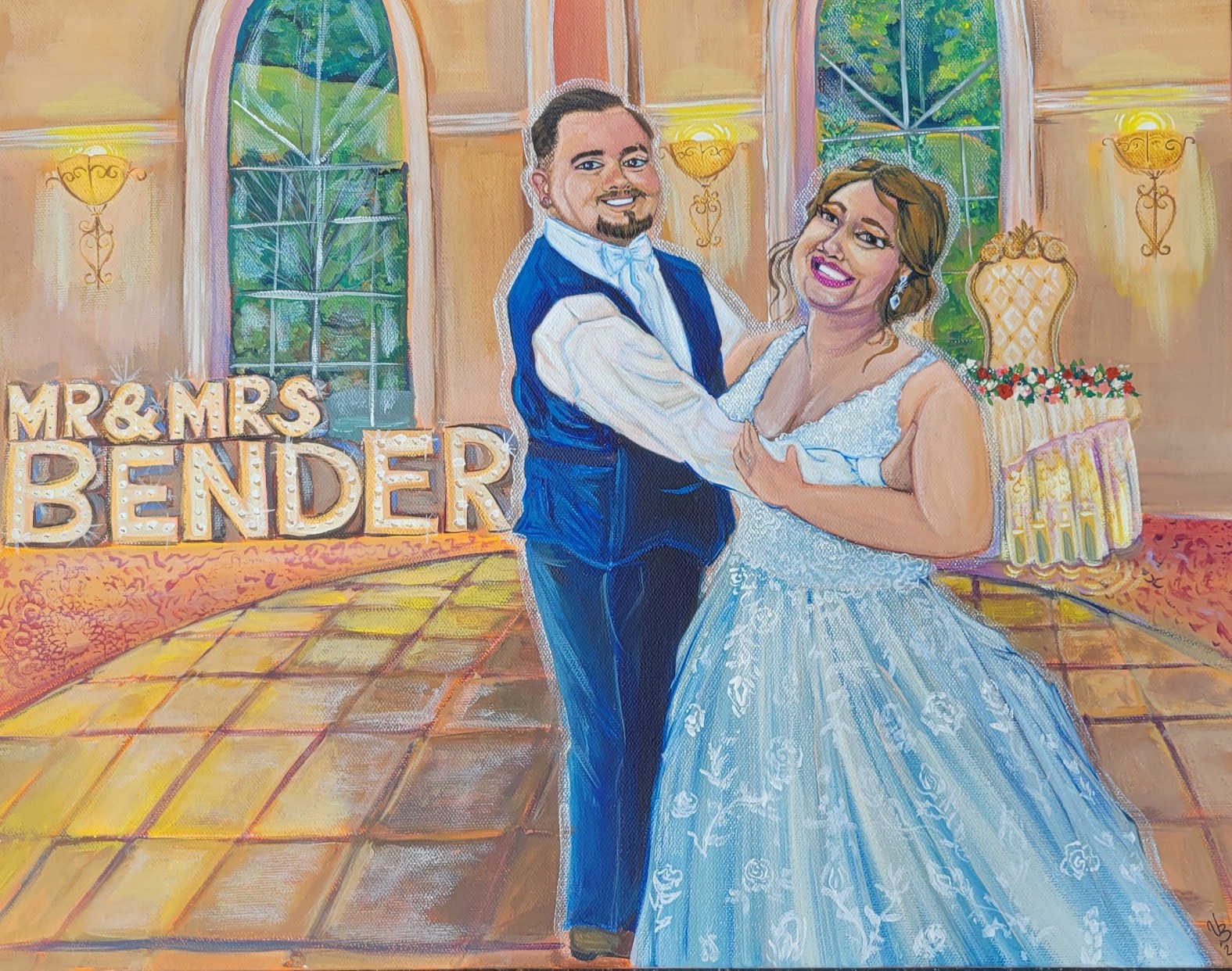 So In February of 2022 I took the leap from working a 9-5 to working for myself as a Freelance Artist. Very risky move because no one ever talks about the the “Wealthy” and “Oh so Successful” Artist. Usually the first term that comes to mind is the “starving” Artist. Barely making ends meet. But I had seen an artist on Tik Tok in 2020 that did Live Wedding Painting. She would go to people’s weddings and paint them then and there. I thought that was such a cool idea. And While I don’t have her talent for realism, or to paint quickly, I do have talent.