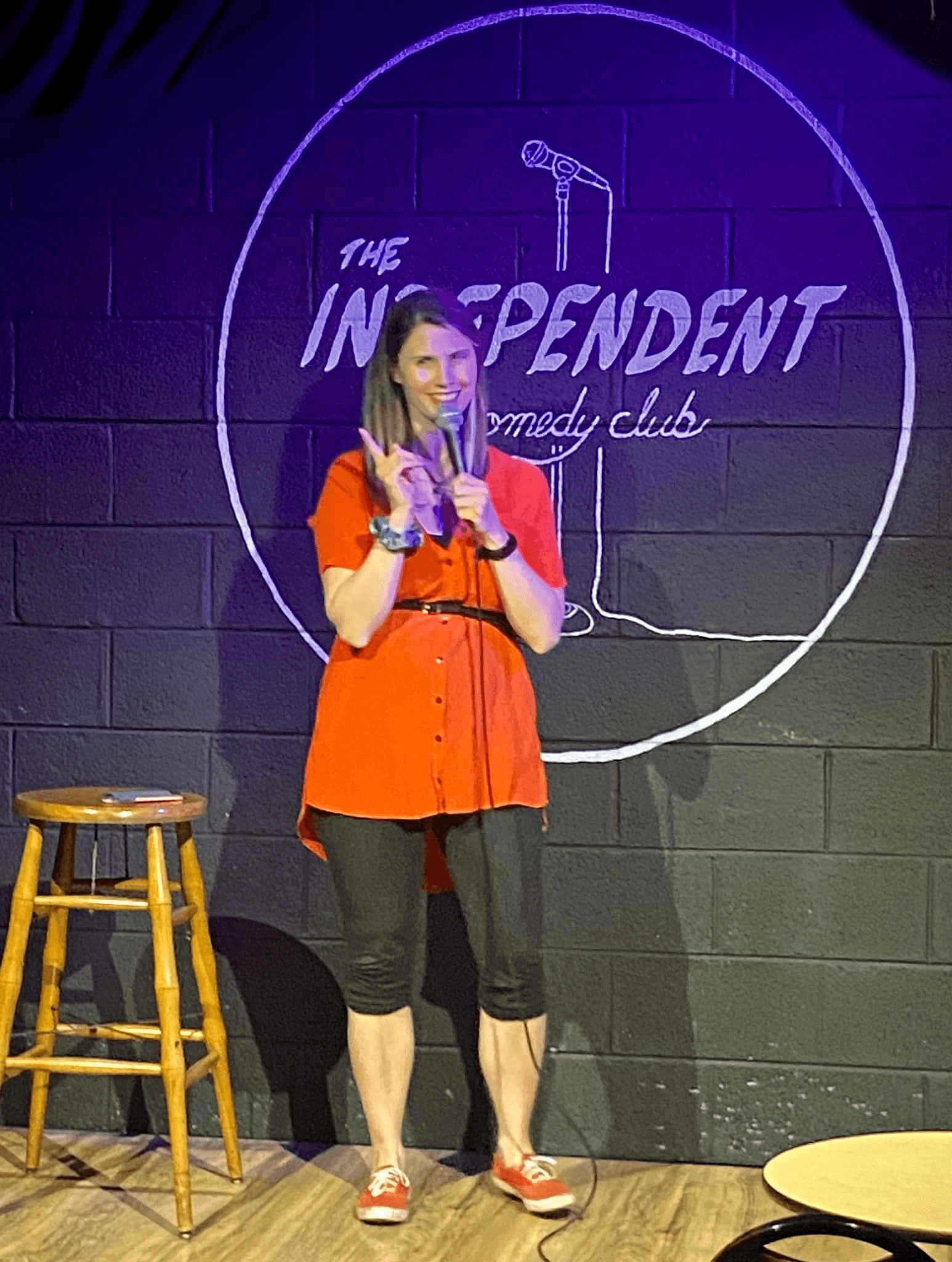 I’m a stand-up comedian, so I perform in comedy shows and open mics all over the state. Comedy can incorporate a lot of different elements–I’ve done podcasts, Tiktoks, and I even hosted a short-lived comedy bingo night.