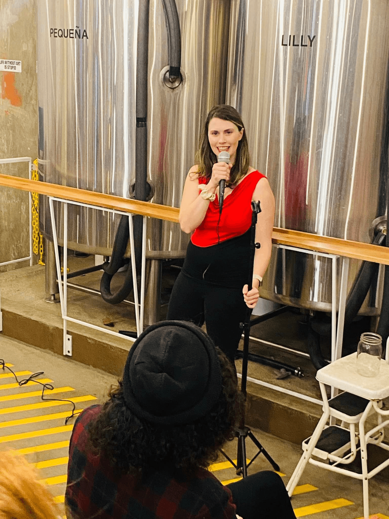 About a year into my comedy journey, I started hosting an open mic. It was a stereotypical dirty open mic in a dive bar–anybody could show up and perform on it whether they were good or bad or had showered in the last 5 days. I had fun hosting, but about a month in, I realized that I was frequently one of two or three female comedians there and we were extremely outnumbered by men. To top it off, a female comedian friend confided in me that she didn’t like stopping by my mic because she felt like the men didn’t want to even try to relate to her material and a lot of them would talk over her when she performed. This made me livid and out of that was born Fem Feedback: a feedback mic for female and/or trans comedians.