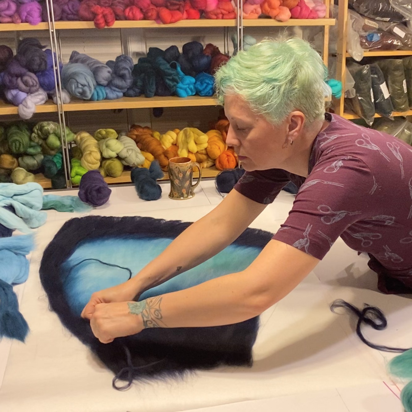 I am primarily self taught. I learned some basic millinery (hat making) skills while studying costume design in college. Ten years later I took a 2 day course with an excellent professional milliner in San Francisco, but I taught myself to felt and several of my techniques are of my own design. I am proud of that but simultaneously prone to imposter syndrome and get very nervous when a ‘real’ milliner or ‘real’ felter comes into my booth at craft shows. I strongly believe there is no ‘wrong’ way to make something as long as it functions well and looks good (there is a reason I named my business Miss Fitt ) But, alas, I still live in fear of another artist walking into my booth and telling me what’s wrong with how I do things. (It’s only happened once in 24 years. Ok sort of twice but I think I held my own and the second person was actually very nice about it.)