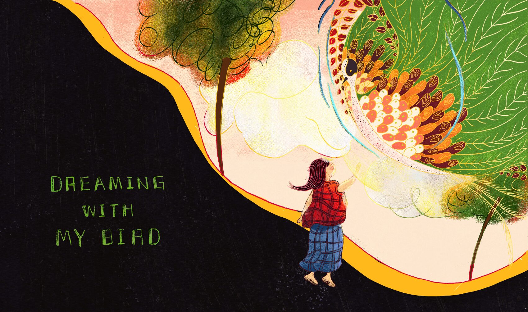 One of the most meaningful projects I’ve worked on is my illustrated series titled “Dreaming with My Bird.” This project holds a special place in my heart because it combines my personal experiences with storytelling and visual arts, allowing me to heal myself while conveying themes of hope and healing to my audience.