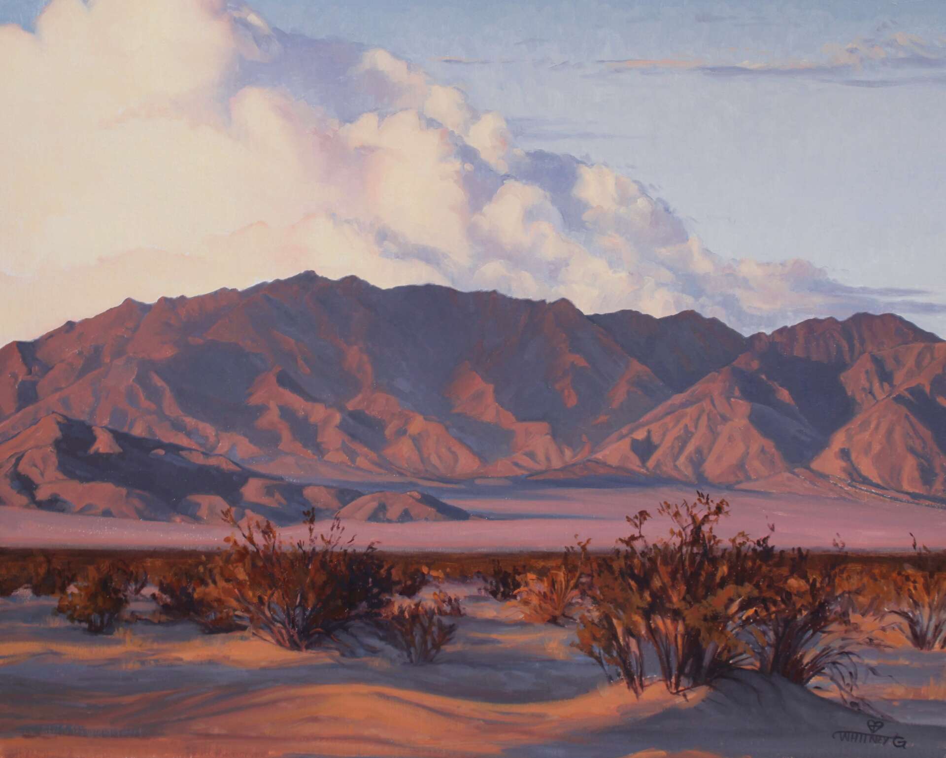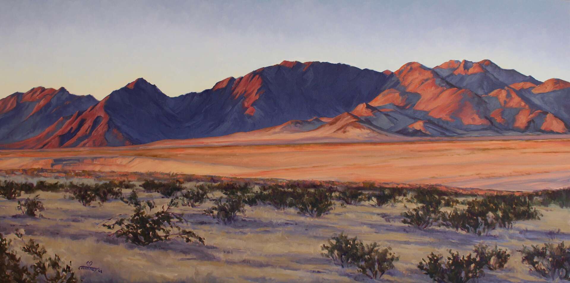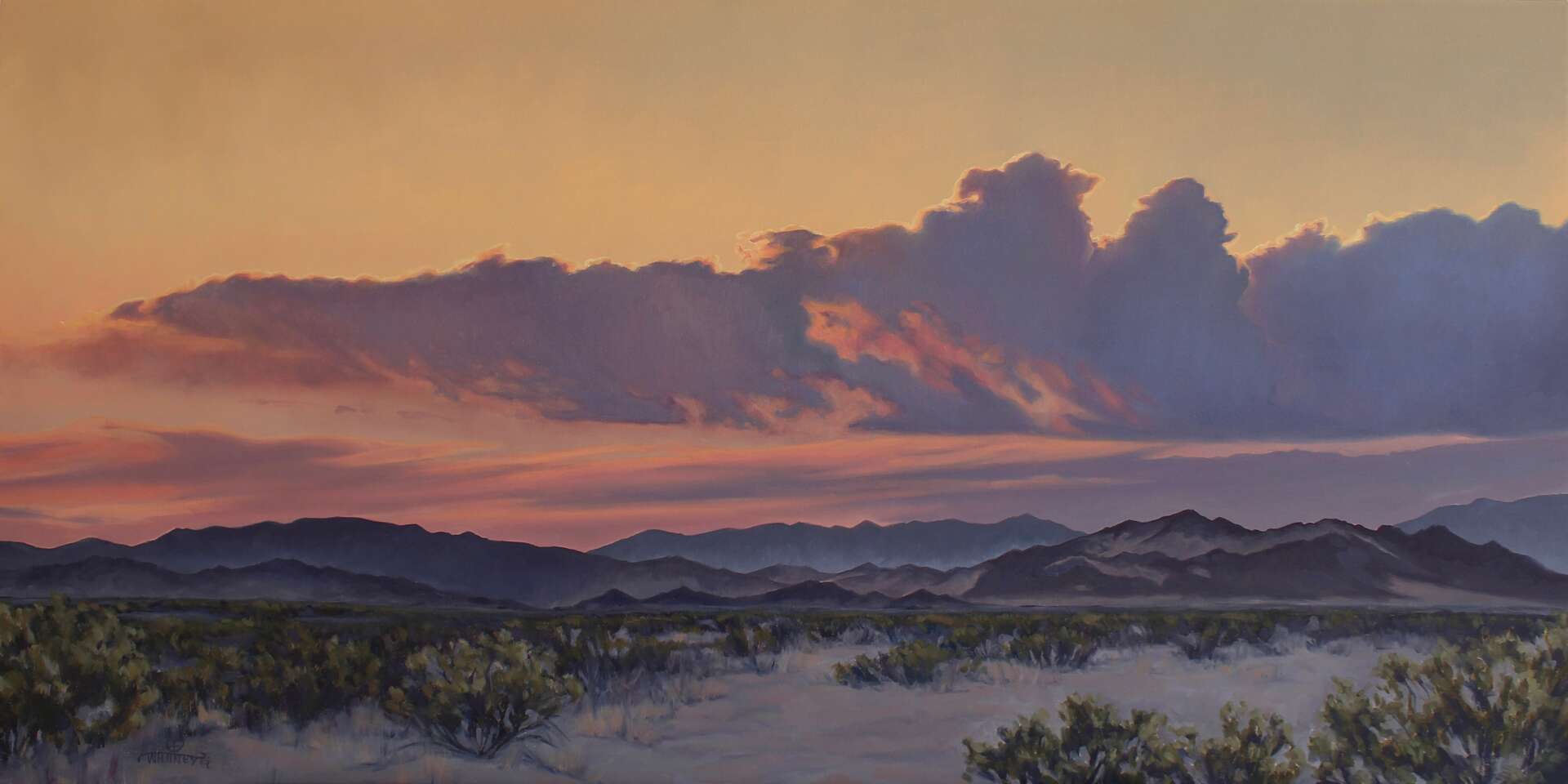 Somewhere in my journey of developing my voice as a landscape painter, I discovered a resurgence happening in Western Art. I had not been aware that there were so many well established, and young and up-coming artists, making work about the west. I had associated that market to the time of Fredrick Remington and Charles Russell. I was incredibly inspired by the contemporary work I was seeing in this genre, and I felt my paintings could have a unique home amongst painters depicting Native Americans, cowboys, horses, wildlife, and landscape. I was very attracted to southwestern landscapes I was seeing from these western artists, yet most were of Arizona and New Mexico, and I thought I had something to say in that conversation with my paintings of the far west, of California. I didn’t feel that the Mojave was represented widely within the Western art genre.