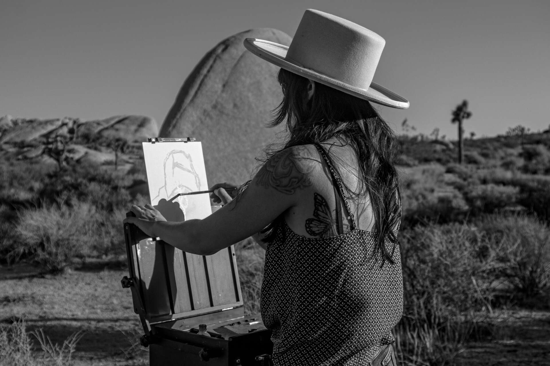 Though my social media following is a humble number, and though I only participate on Instagram, the platform has been such a helpful tool. I have directly connected with collectors, magazines, galleries, and other artists that have all delivered positive opportunities for my career. I have a very vibrant and fun community of followers that make sharing my work rewarding and inspiring. It has been a slow and steady process in growing this audience, and for me, that audience is all quality rather than quantity. I think the audience was built from my genuine authenticity with what I share. It is curated to be everything art and desert lifestyle centered, but in fact, all the content is truly the life I live. I share clips of my studio, my process, my sketchbook, my hikes, wondering around the desert with my dog, art shows, camping trips, road trips and poetry all paired with a soundtrack that is genuinely the music I have been listening to that day. I don’t follow fads in my posts, like turning around slowly to reveal a new painting in my hands, or using popular inspirational audio clips in my reals. I try to let my profile reflect me and my work as much as possible. Also, I take pride in responding graciously to every person who reaches out to comment on a post or write a direct message. If they take the time engage with me, I take the time to engage with them and let them know I appreciate their interest.