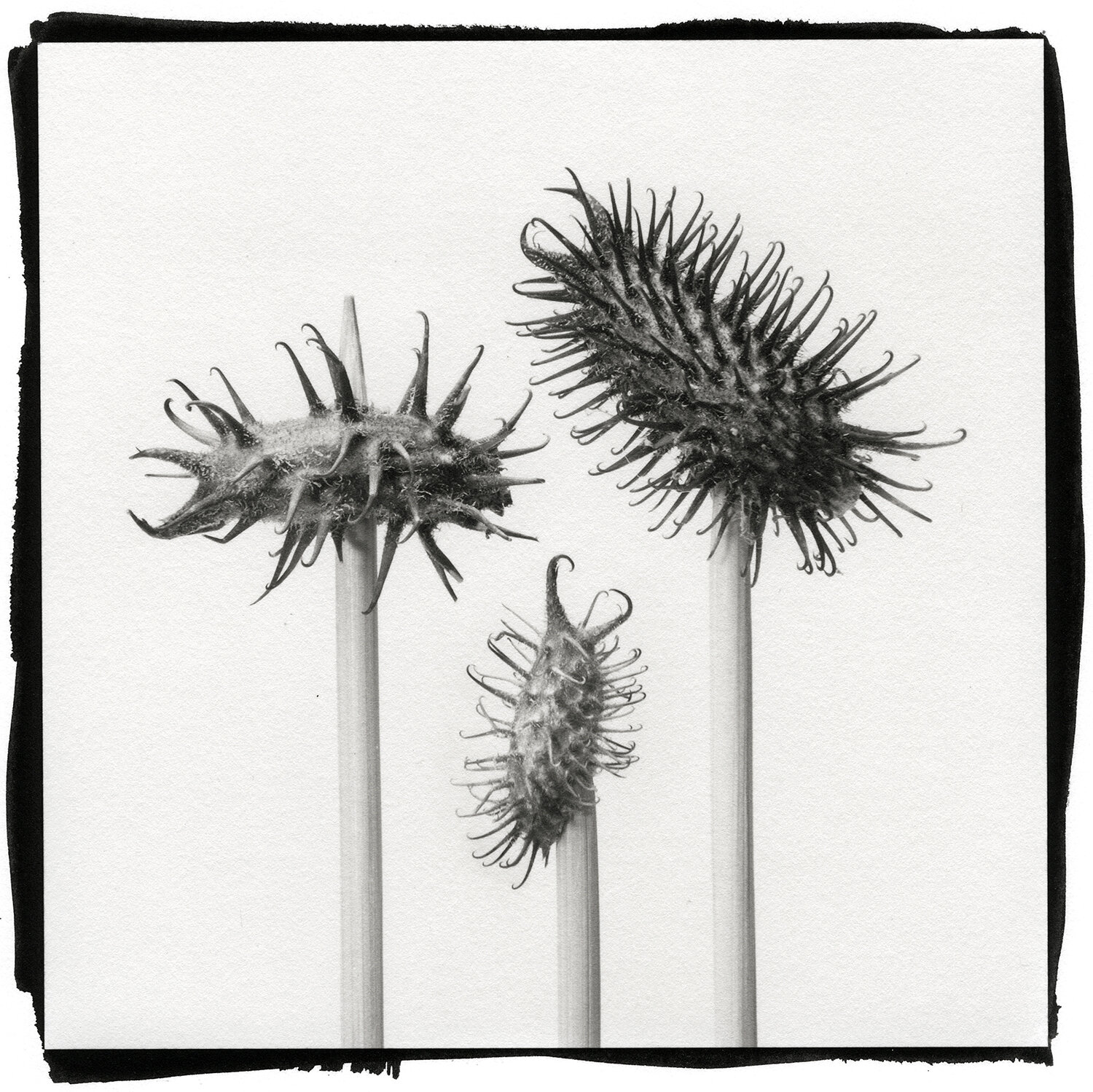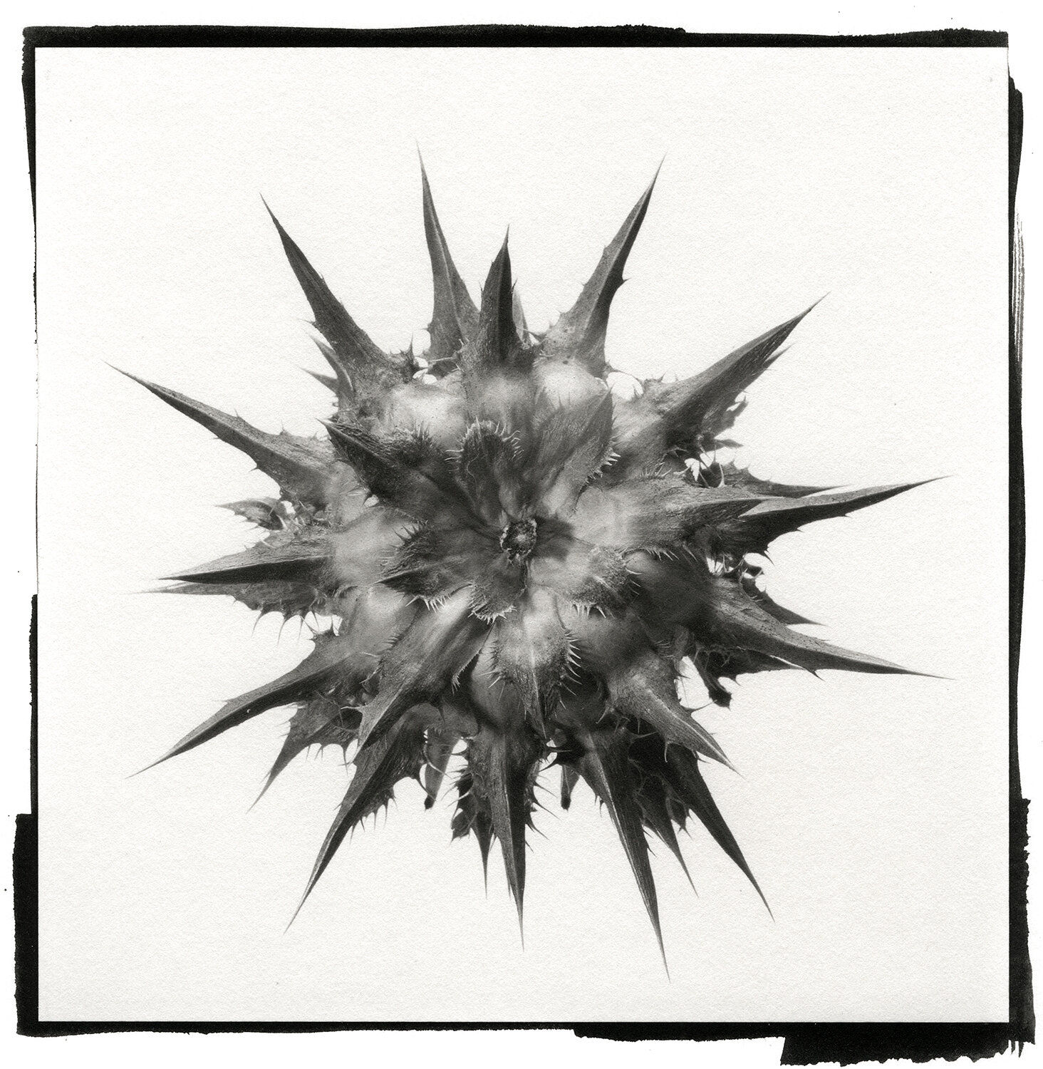 These vessels—cones, pods, and acorns—have a very powerful presence and contain immense beauty, which drew me to start the “GRANA” (Latin for “SEEDS”) series and to celebrate the beauty of nature. Long years of drought dried out the hills and valleys, fueling long periods of wildfires and killing everything around. It seems that using the platinum/palladium print process—with its sharp details, numerous shades, and super matte finish—was the right medium to express my vision.