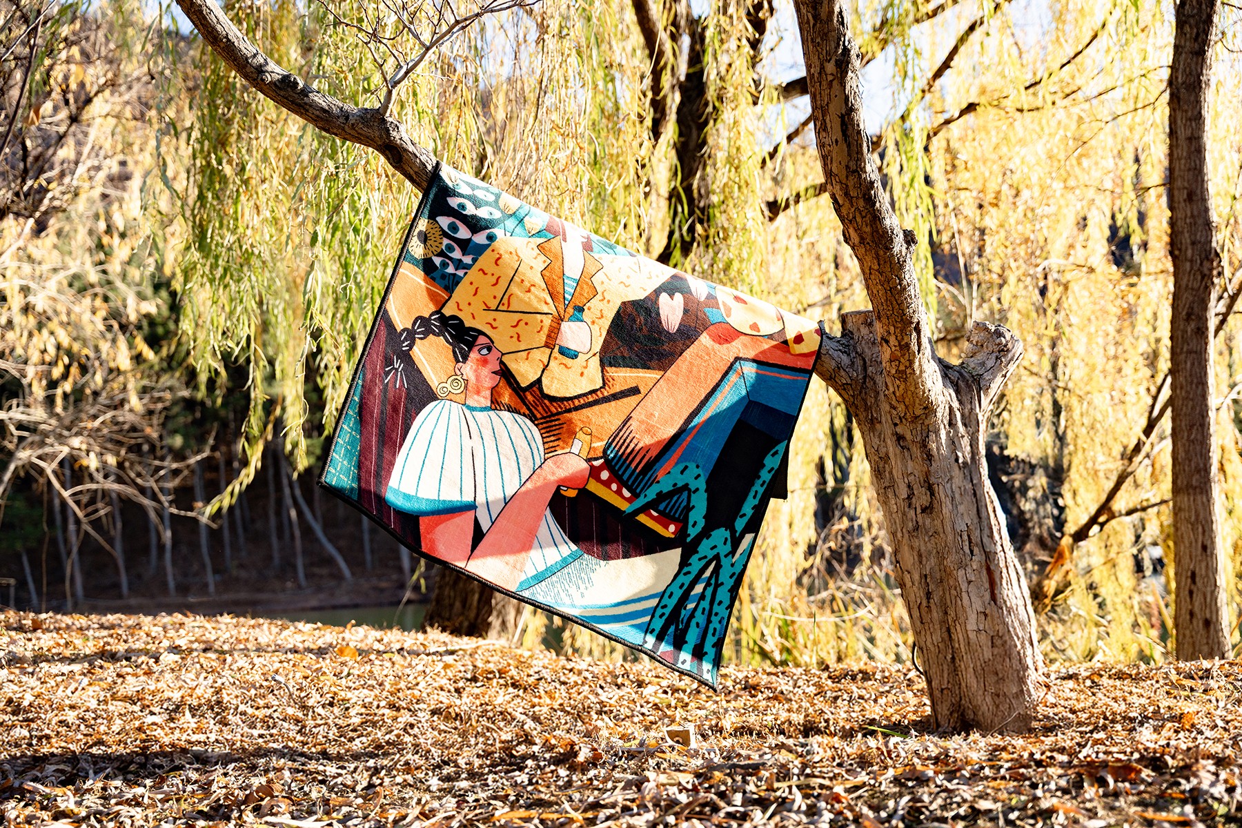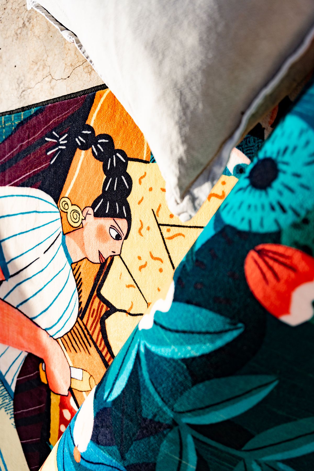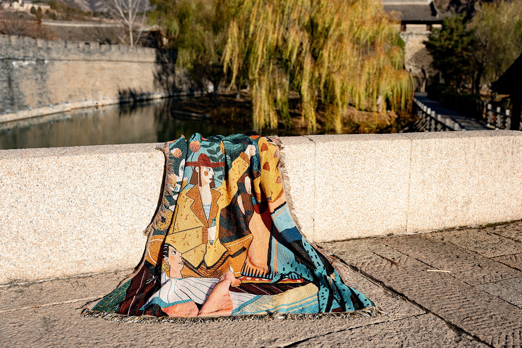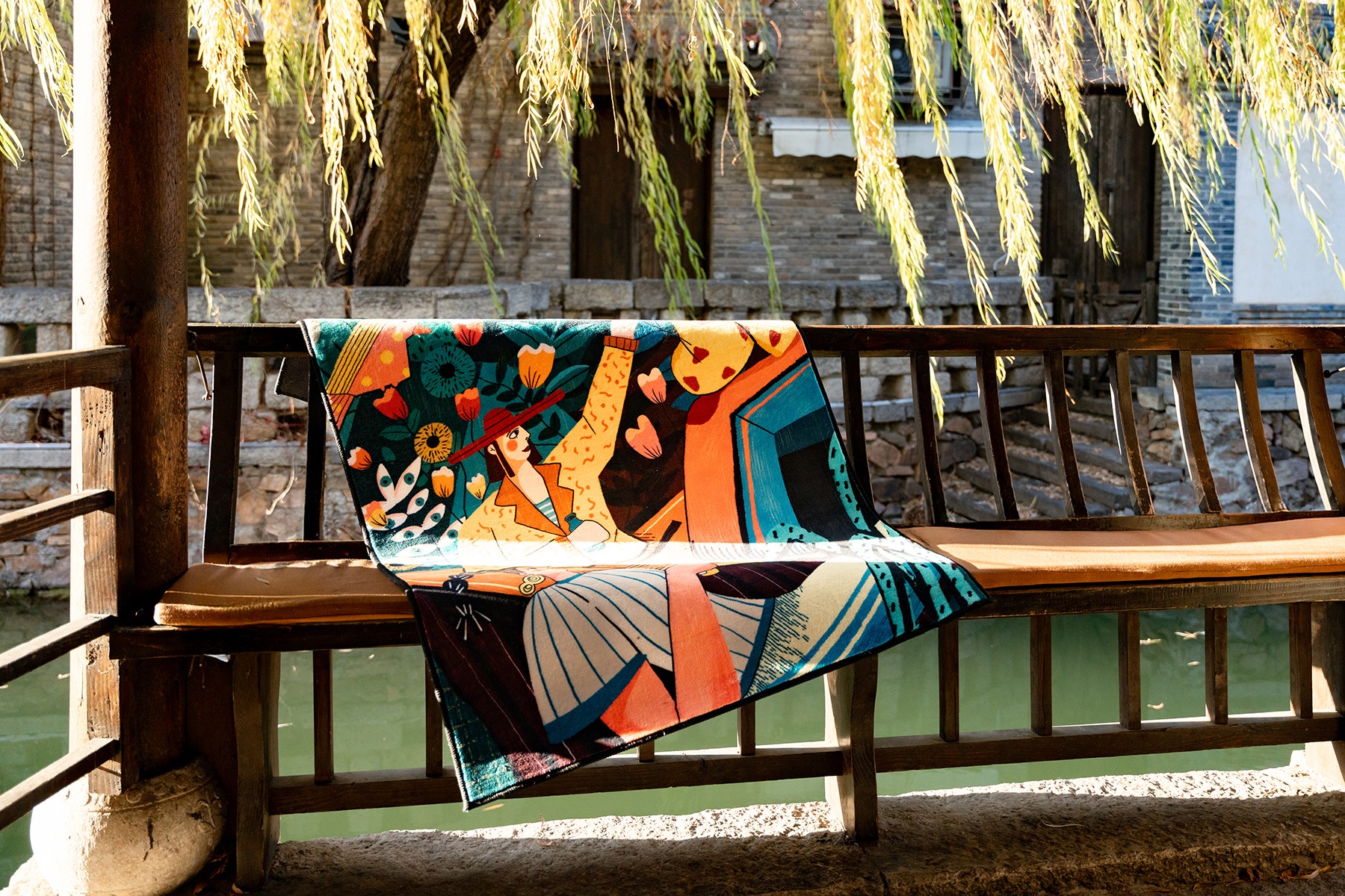 The initial inspiration came from an afternoon stroll in a garden. Under the sunlight, a girl sat peacefully on the grass, surrounded by blooming flowers and fluttering butterflies. This scene later became the inspiration for the “Afternoon in the Garden” series. I use delicate watercolor strokes to capture this freshness and tranquility, extending my work into diverse mediums such as scarves, carpets, and wall art installations, bringing art from the canvas into everyday life. I think, “Cross-disciplinary collaborations have shown me another possibility for art—infusing natural emotions into people’s daily lives.”