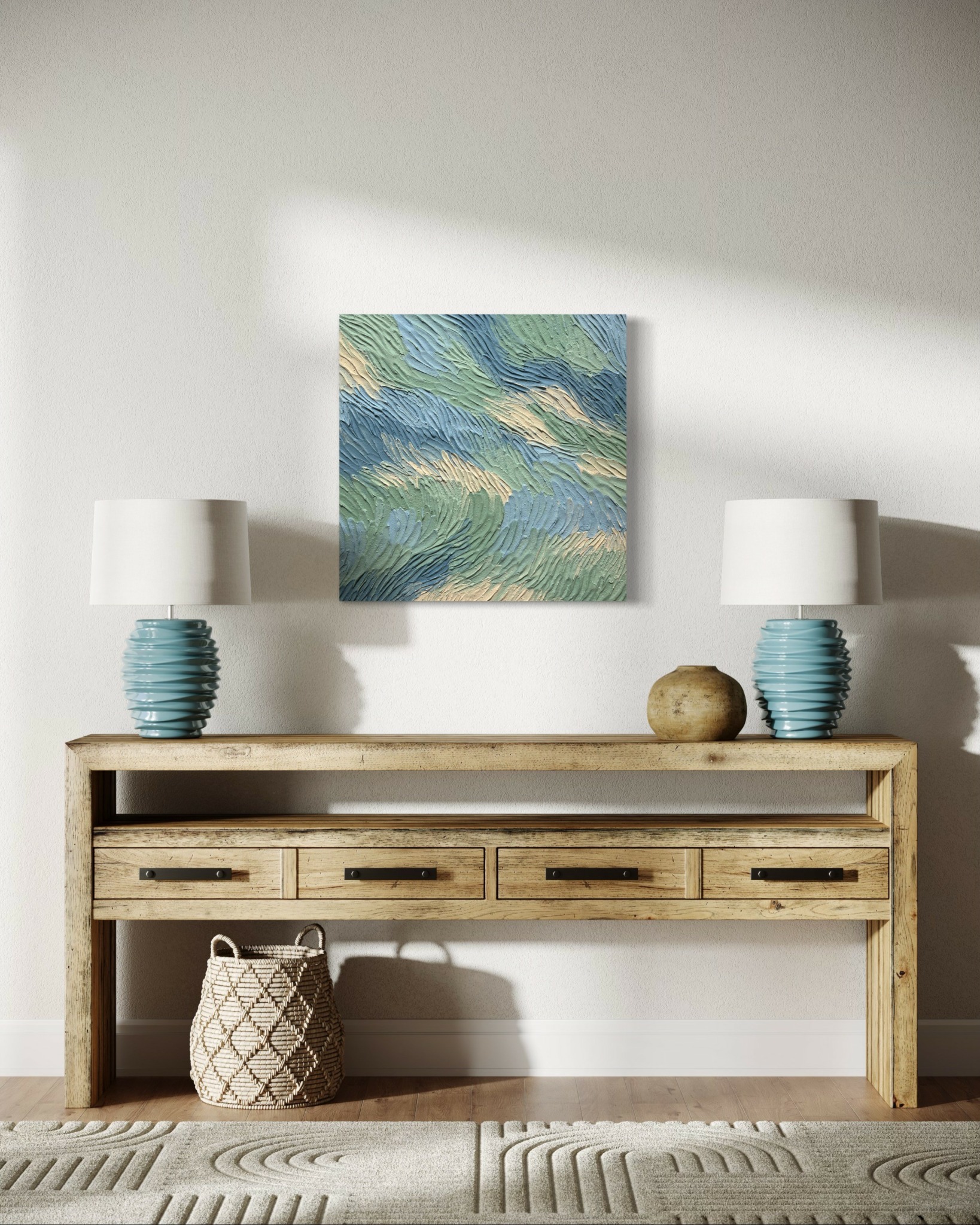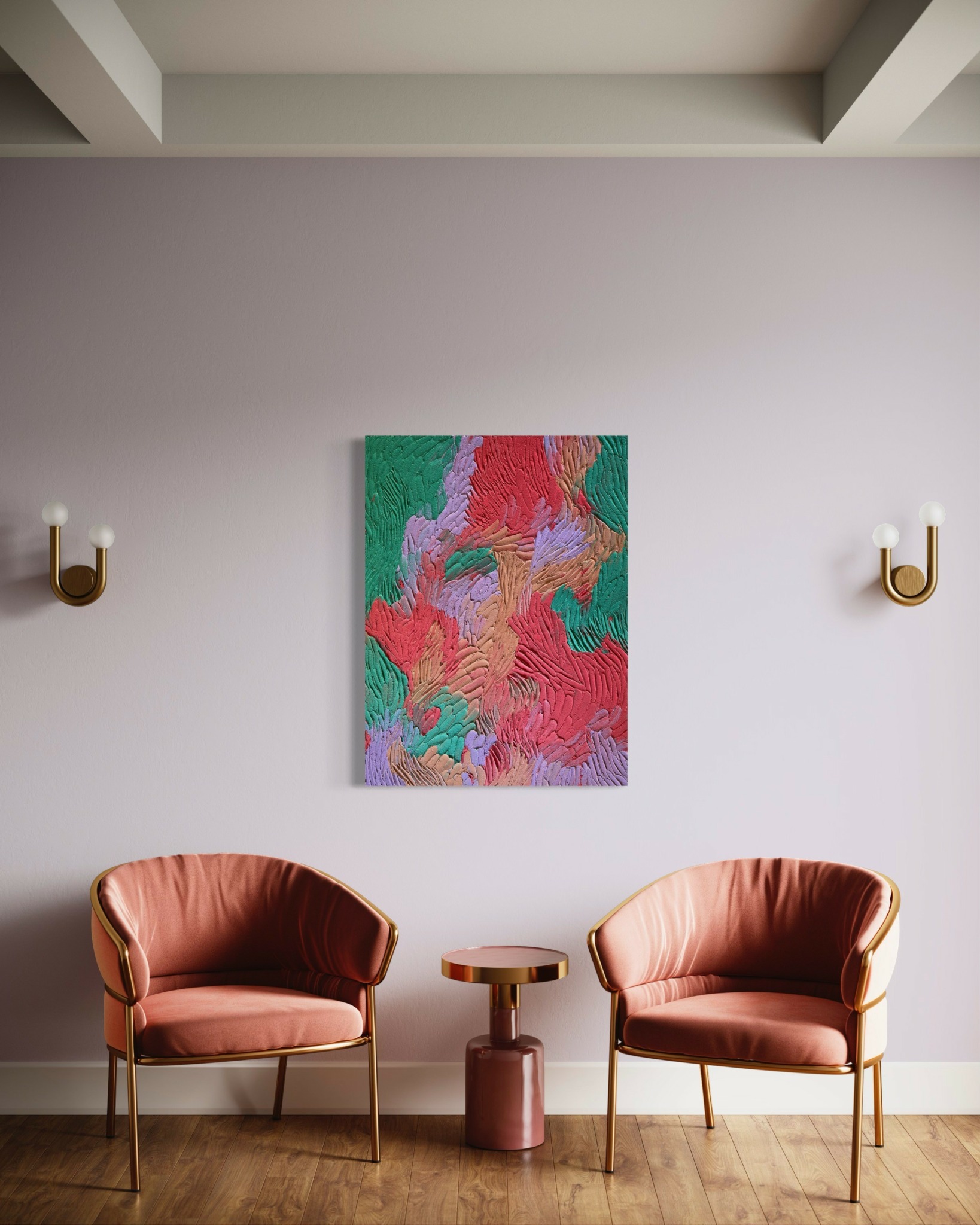 I specialize in abstract, textured paintings that blend colors, movement, and depth to evoke emotion. My work is about more than aesthetics—it’s about meaning. I thoughtfully title each piece, sometimes in different languages, to spark curiosity, reflection, and conversation. I primarily work with acrylics and modeling paste, crafting elegant and modern pieces for public spaces such as restaurants and hotels, as well as bespoke commissions for private collectors. I love collaborating on custom requests, weaving my artistic touch with my clients’ visions.