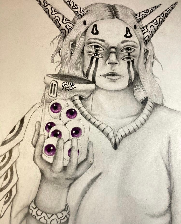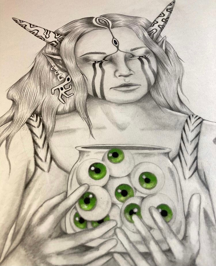 Ive always felt like a artist, and I don’t think I could ever be anything else. Drawing was my first love, I used to collect little plastic dinosaur figurines as a kid and would sit at the kitchen table and draw them for hours in different poses. As I got older and my drawings became more refined I began working on my own creatures, folklore, and ways to express myself through fantasy. Mapping out the characters in my mind and exploring what could be to escape everyday life.