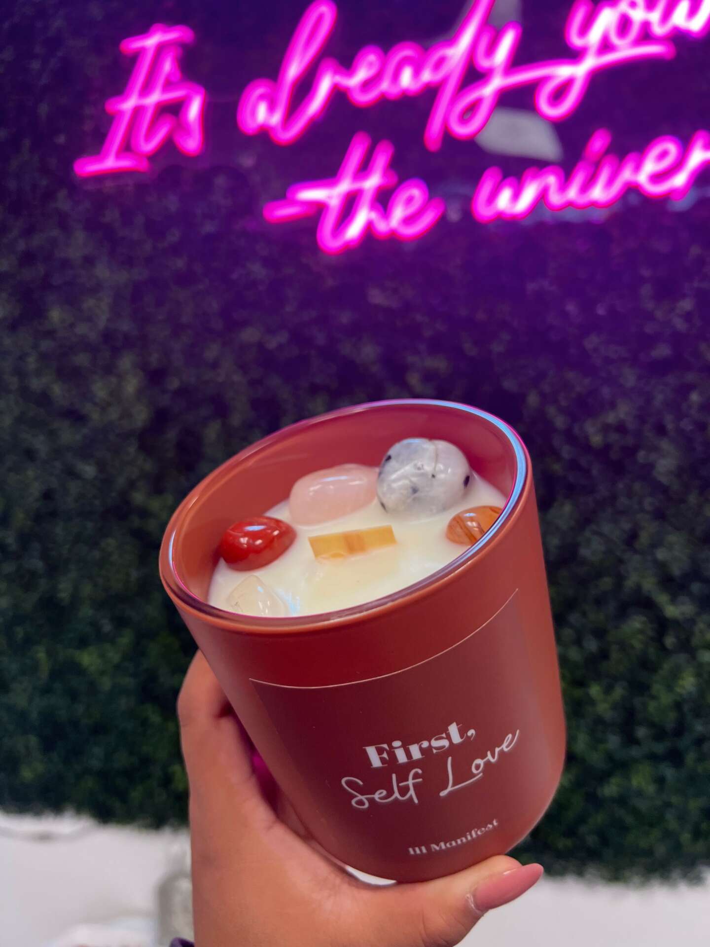 It was my Christmas gift in 2020 for my daughter to be born 4 days before Christmas, my husband knew it was going to be a transition to become a mom of 2, he bought some candles from Kylie Jenner, which I love her products. Fast forward to March, my uncle passed away in Peru, with no passport to travel, the only one who was able to go was my mom. To cope with the loss, my husband encouraged me to do some self care, and reminded me I hadn’t light up my new candles from my Christmas gift because let’s be honest having 2 kids is a lot of work. I began my self care routine and realized while I loved the candles there wasn’t a message, just a label and the brand name, that’s when it clicked, I should make candles with intentions, better yet with affirmations in the label where is hard to miss it and you’re constantly reading it, saying it and training your subconscious to believe it. I remember thinking wait I know nothing about how to make candles, that’s where my sisters and mom come in, I hosted a meeting/check up with my sisters, our mom was still in Peru comforting our family’s loss. I pitched in the idea to my sisters first while there was so many questions we were all in, made a FaceTime call with our mom and she was in as well. Step by step we were learning everyday, we split the work in between the 4 of us and we dedicated jobs so we can all look what we loved most about this new business we were creating and we knew we could succeed, with all the trial and error and the learnings we launched our products may 22nd of 2021 and with the help of friends and family we sold out our first batch, we’ve had to adjust and adapt to everything since then, but it has helped our business grow so much that in may of 2022 we signed our lease for what now is our store front.
