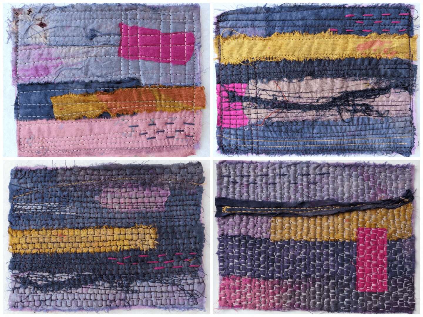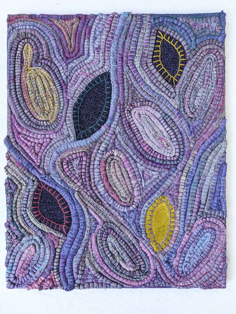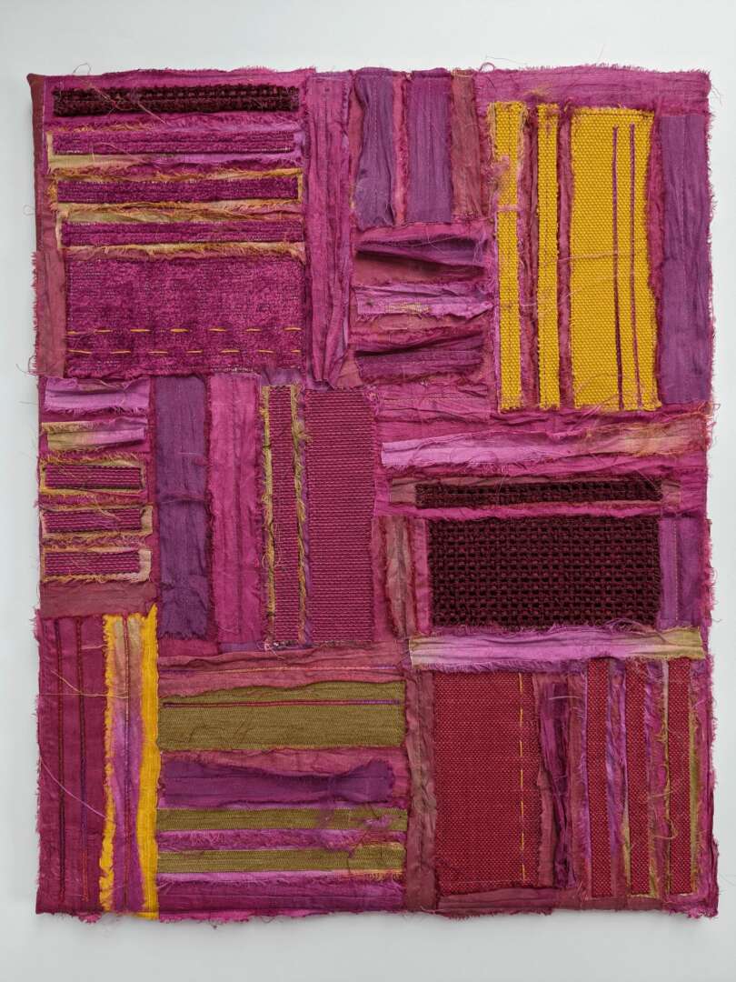 I’ve been creating ever since I can remember myself. I went to an arts high school, where I studied drawing, painting and sculpture in addition to art history. I assumed I’ll pursue art as a career, but then, in college, got drawn into East Asian Studies instead. I took a decades-long break from art, during which I got a PhD in Chinese history, published a book and raised a family. Then I stumbled upon FabMo, a SF Bay-Area non profit organization that rescues designer textiles from going to the landfill. I was drawn to the beauty of those fabrics, to their textures and tactility, and also to the idea of reducing waste, which has always been important to me. Without meaning to, I started creating again.