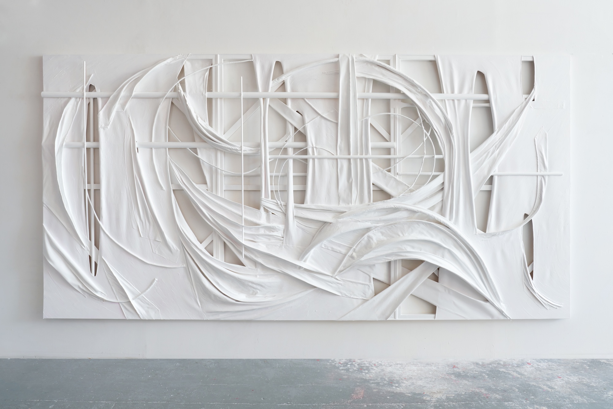 I grew up in Spartanburg, SC, a town historically rooted in America’s 19th century textile industry boom. While the town still has active mills, it has since transformed into one of the fastest-growing cities in the USA. In addition to being exposed to various aspects of textiles as a child, my mother enrolled me in ballet class at the age of five. I’ve continued ballet into adulthood, and it remains a vital part of my artistic practice. Ballet helps me understand my relationship to gravity and informs the abstract gestures in my compositions. Currently, I have work on display at Slag & RX galleries in Chelsea, NY, with a piece deeply influenced by my two lifelong passions: textiles and dance.