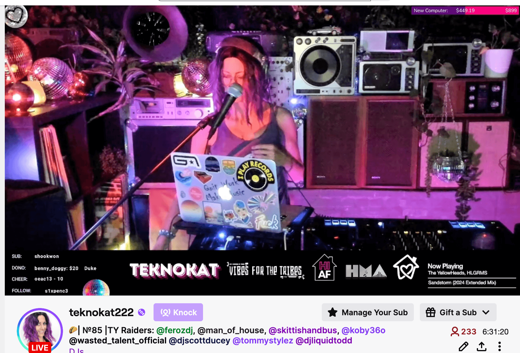 Now that we’re focusing on the “play” aspect at The Simplified Life, it’s allowed me to DJ full-time on Twitch as teknokat222. I’ve had a “quit work, make music” sticker for my entire adult life, and I’m finally doing it. I DJ your decluttering while creating an inclusive community on Twitch and in our Discord.