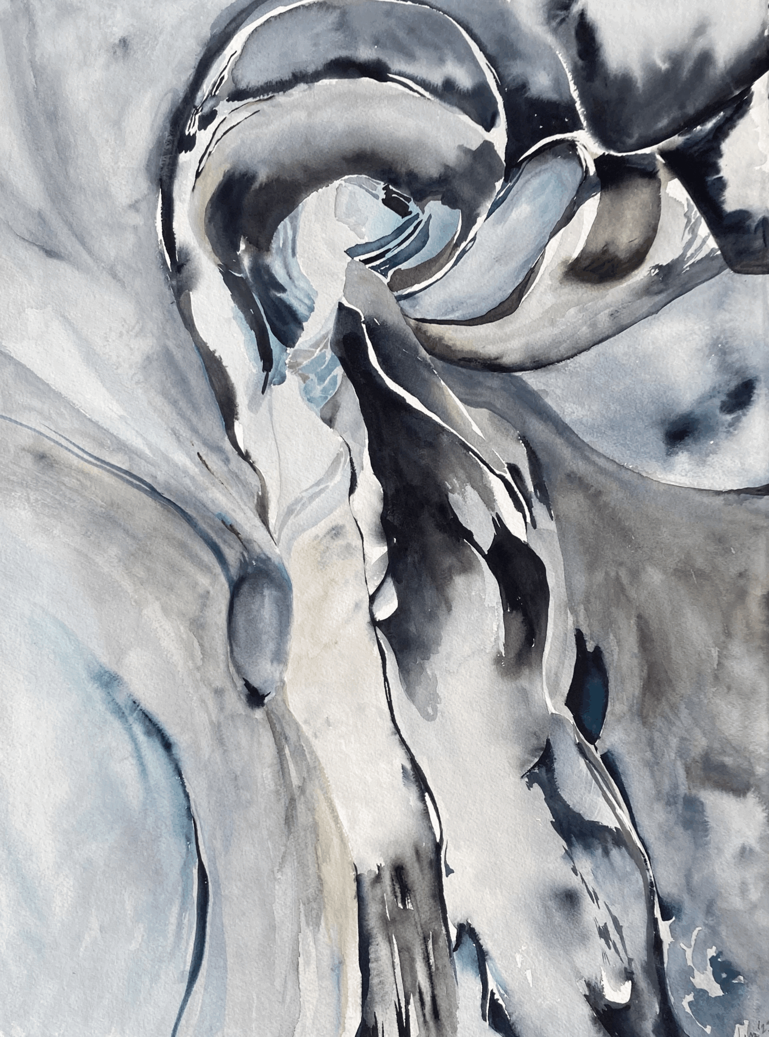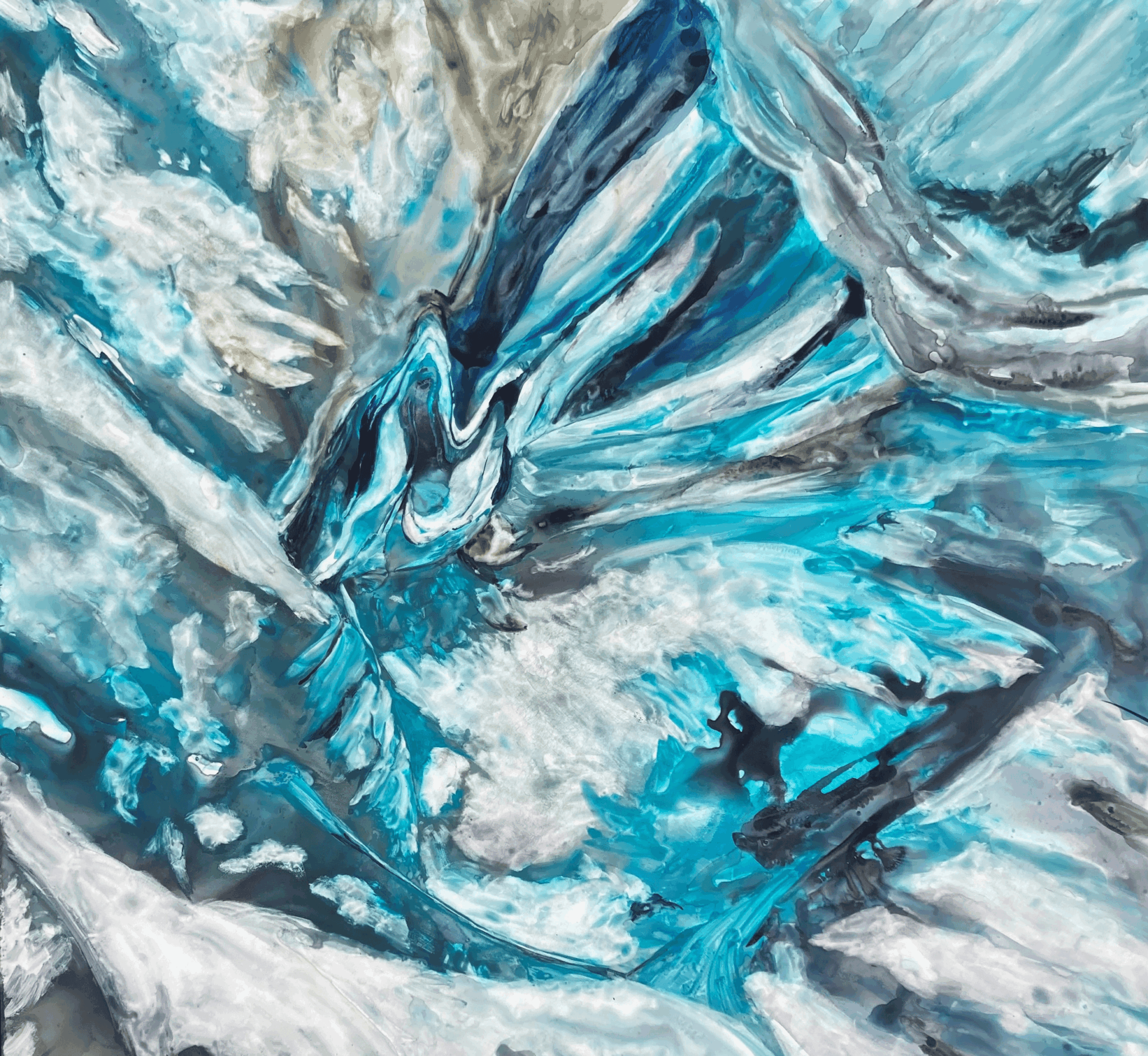 Having focused on ice from the beginning, painting water using water enables me to connect to my subject that keep the ice transparent and luminous.