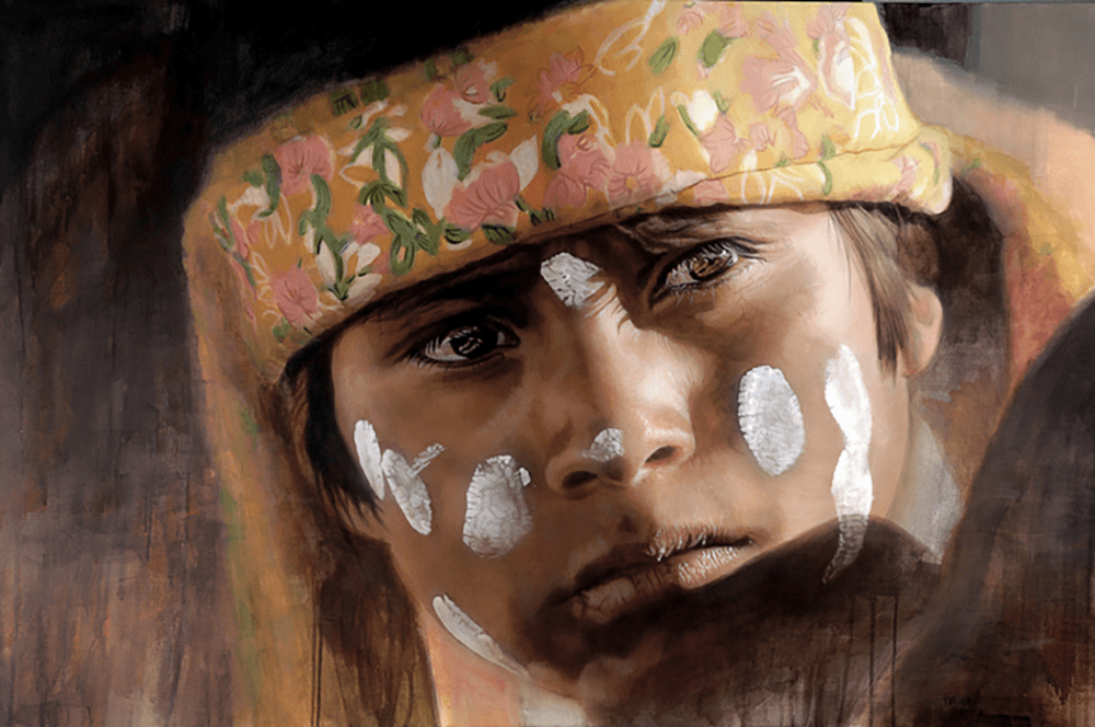 My intention is to show people and faces that have been very little visible or represented in figurative painting, or that have been shown from a documentary or decorative perspective. The representation of the face and body is never neutral since the conventions, convictions and dynamics of society are shown through the way we decide to represent ourselves. My intention is to show the indigenous roots from a humanistic, horizontal and even confrontational perspective. And through their faces and looks they express feelings and emotions known to everyone. In this way, the conditions of possibility exist to build a bridge full of empathy and vulnerability towards the viewer: –“I am like you, although physically we are very different.”