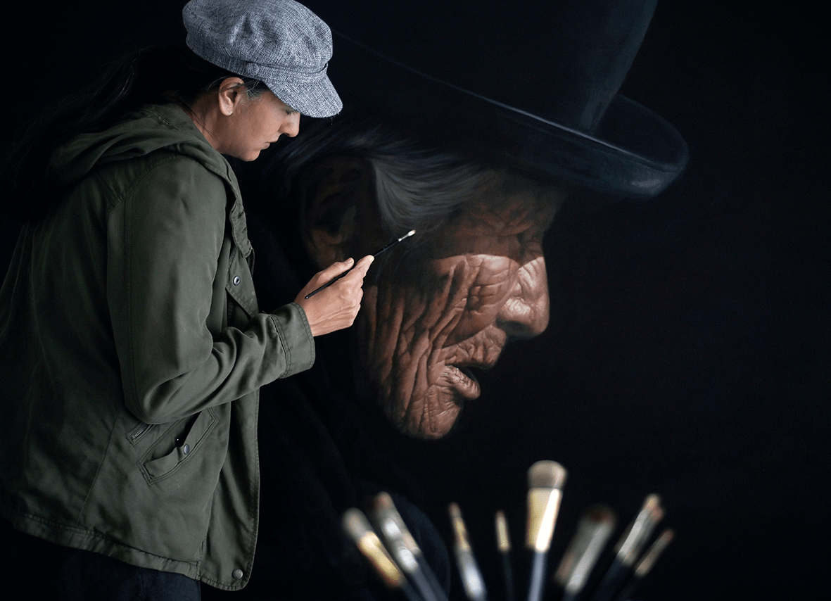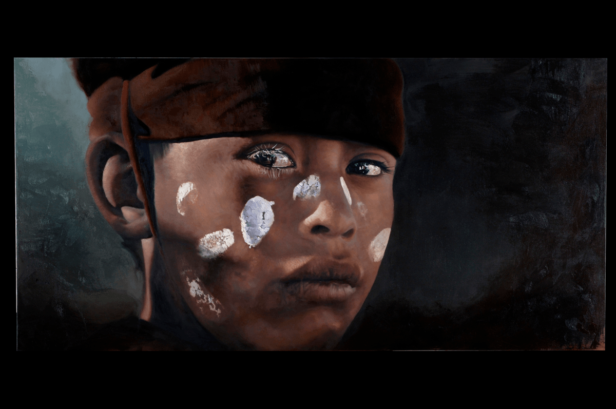 I have been painting indigenous portraits for the last 13 years, painting them is for me an act of resistance, a gesture of empowerment, visibility and memory for the native peoples, of their wisdom, of their alternative ways of understanding reality, of perceiving and creating life. The paintings are an act aimed at dismantling the classism and racism that still prevails, the result of centuries of oppression and injustice. They are an attempt to sensitize the viewer through faces that lead us to recognize and identify ourselves as the human beings that we are, who not only share the world but our own feelings. They are faces that need to occupy space to be made visible, with all the dignity and humanity that has historically been denied to them as there are no first or second class human beings, WE ARE ALL THE SAME!!