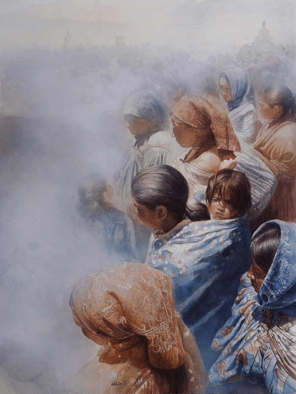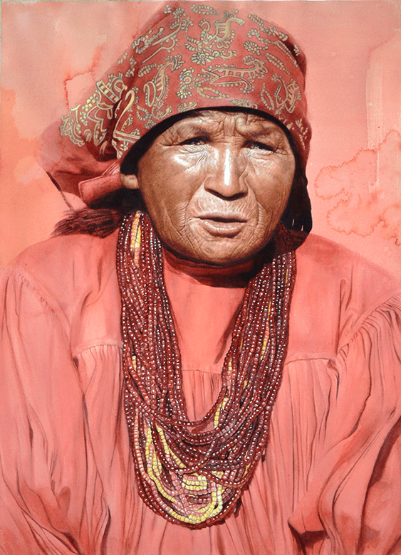 This is a project carried out with my partner Raúl Barajas, photographer. It arose with trips to Peru, Bolivia and China. However, since 2010 we have worked with the Roots Series. To paint, I rely on the reference photos we both take on our journeys. We contact the leaders of the communities, schools, or institutions, we present our project and ask permission to take photographs. Our intention is to create a photographic and pictorial collection of the native peoples of Mexico, Latin America and the world.